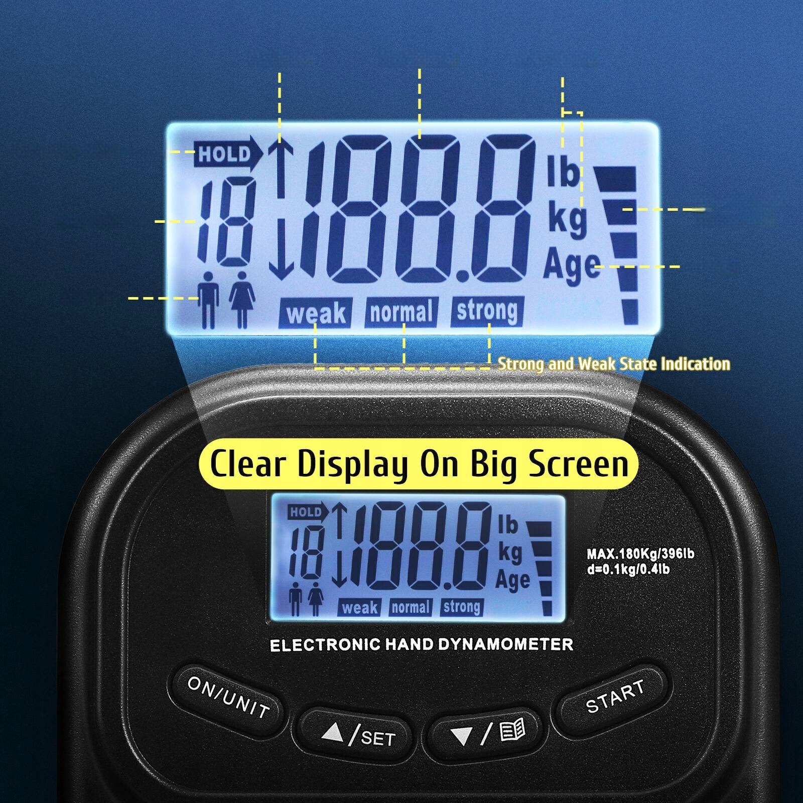 🌈Простота в использовании: этим динамометром силы захвата легко управлять, просто возьмите устройство в руки, чтобы выполнить тест.