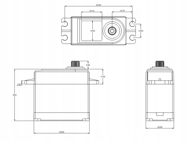 Металлические шестерни сервопривода гарантируют длительную и безаварийную работу, а алюминиевый корпус дополнительно помогает быстро отводить тепло изнутри сервопривода.