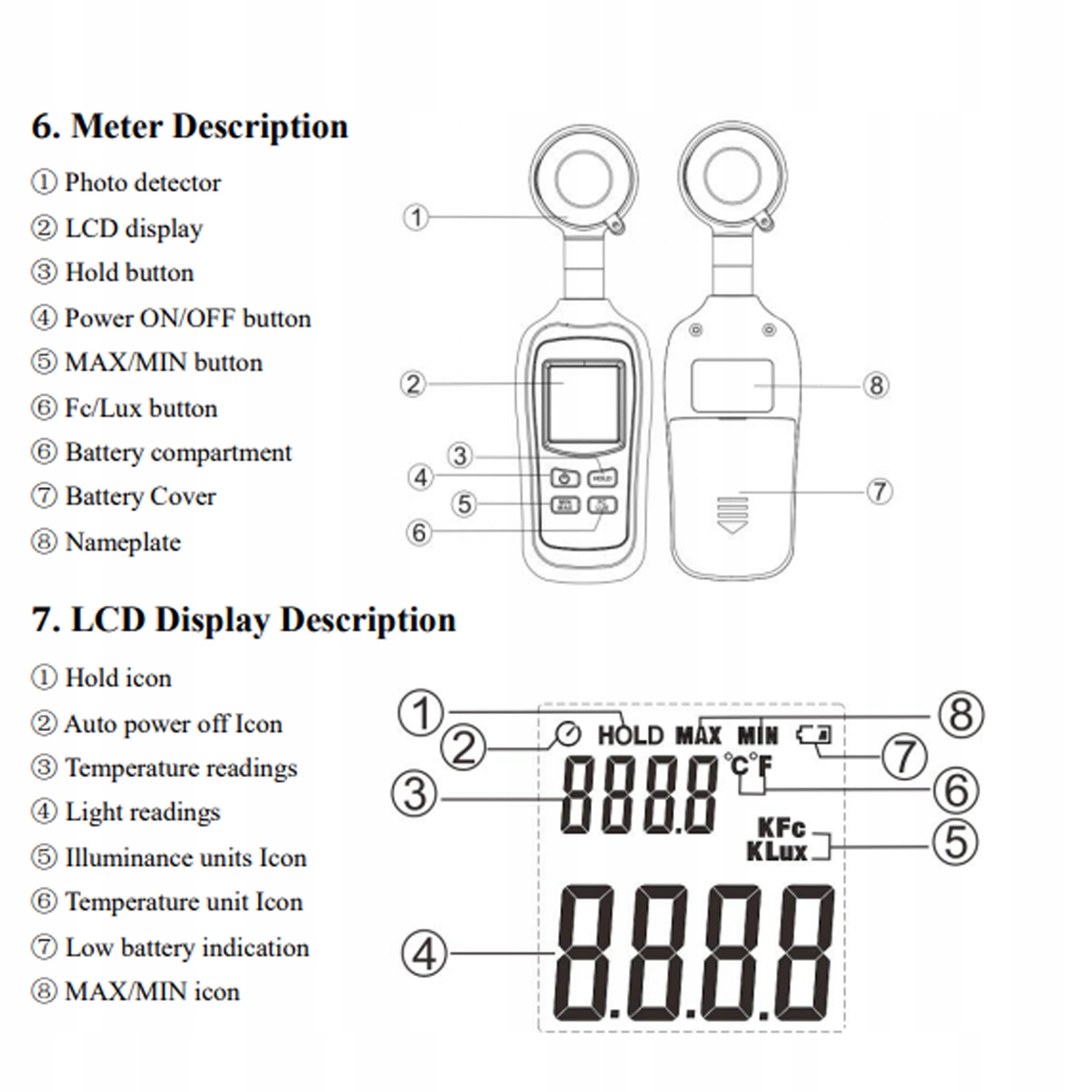 Диапазон измерения: 0 Lx~200K Lx, 0Fc~20KFc