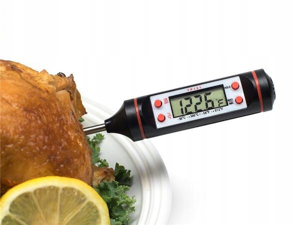 - Цифровой термометр позволяет приготовить идеально приготовленное мясо, не разрезая его и не оставляя на нем огромных проколов. Он имеет широкий диапазон температур по Цельсию и Фаренгейту: от -58°F до 572°F или от -50°C до 300°C.
