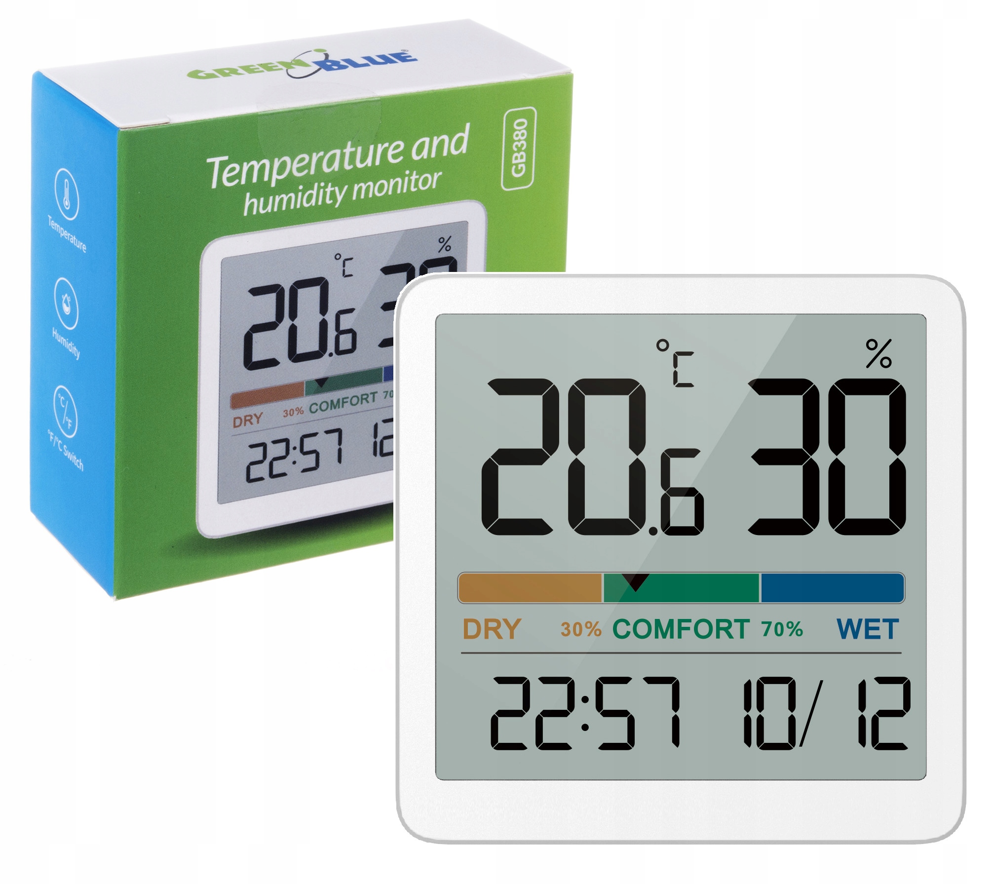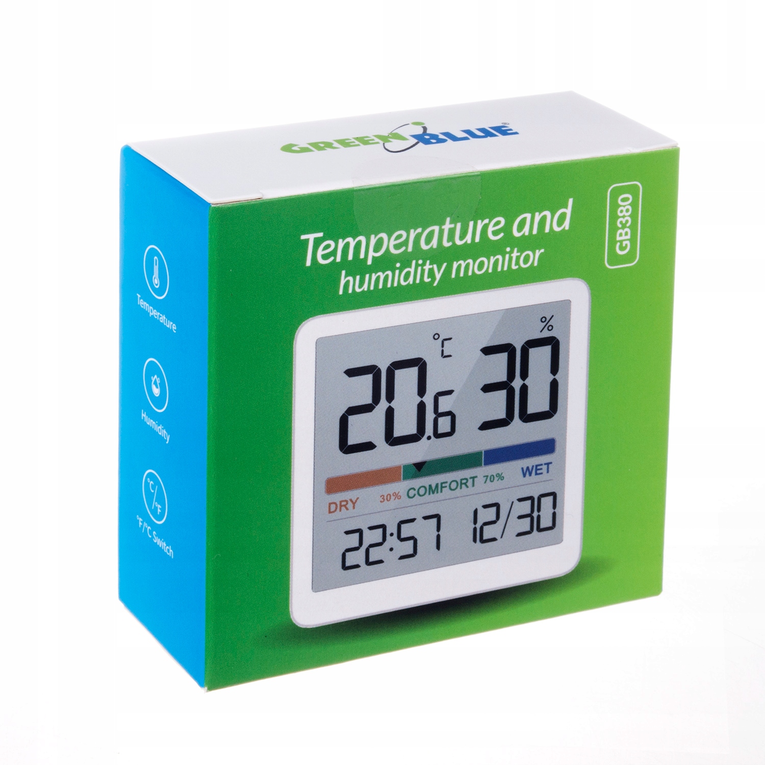 Термометр/гигрометр GreenBlue GB380 с функцией часов и даты