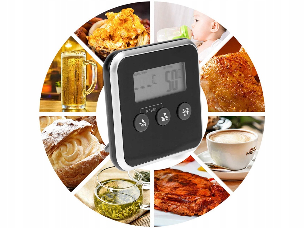 ЦИФРОВИЙ ТЕРМОМЕТР З ТЕРМОЗОНДОМ ДЛЯ СМАЖЕННЯ М'ЯСА, ТАЙМЕР КОПИЛЬНИКА LCD СИГНАЛ