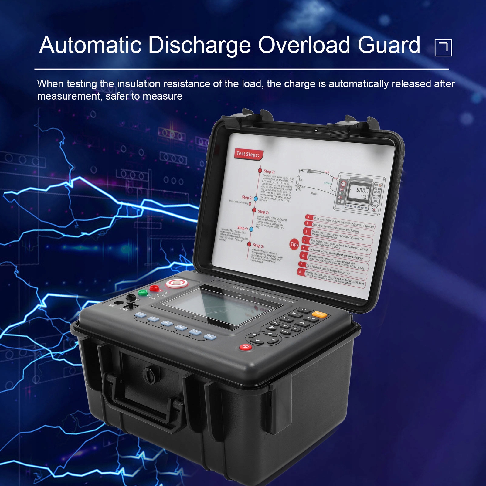 2. Безопасное измерение: этот тестер сопротивления изоляции автоматически выпускает Adunia после измерения сопротивления нагрузки, обеспечивая двойную защиту, обеспечивая безопасное и надежное измерение