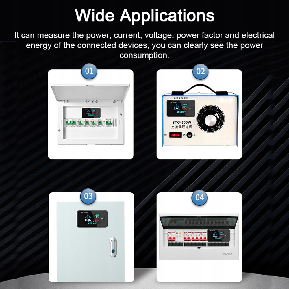 5. 【Широкое применение】: можно измерять мощность, ток, напряжение, коэффициент мощности и электрическую энергию подключенных устройств, вы можете четко видеть потребляемую мощность.