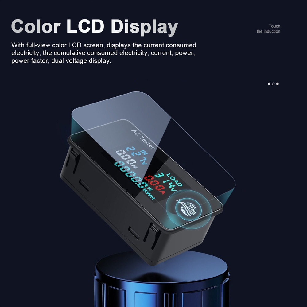 - 【Цветной ЖК-дисплей】: полноэкранный цветной ЖК-экран отображает текущее потребляемое электричество, совокупное потребление электроэнергии, ток, источник питания, коэффициент мощности, отображение двойного напряжения.