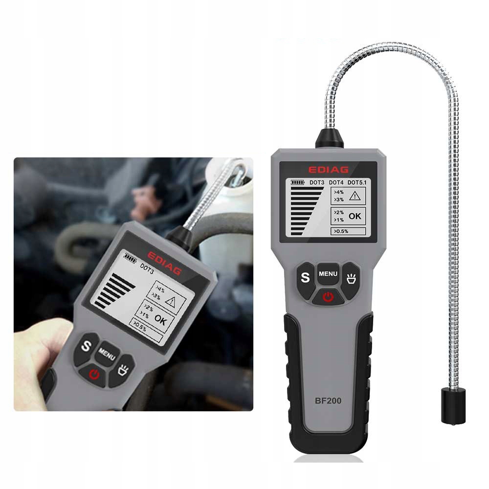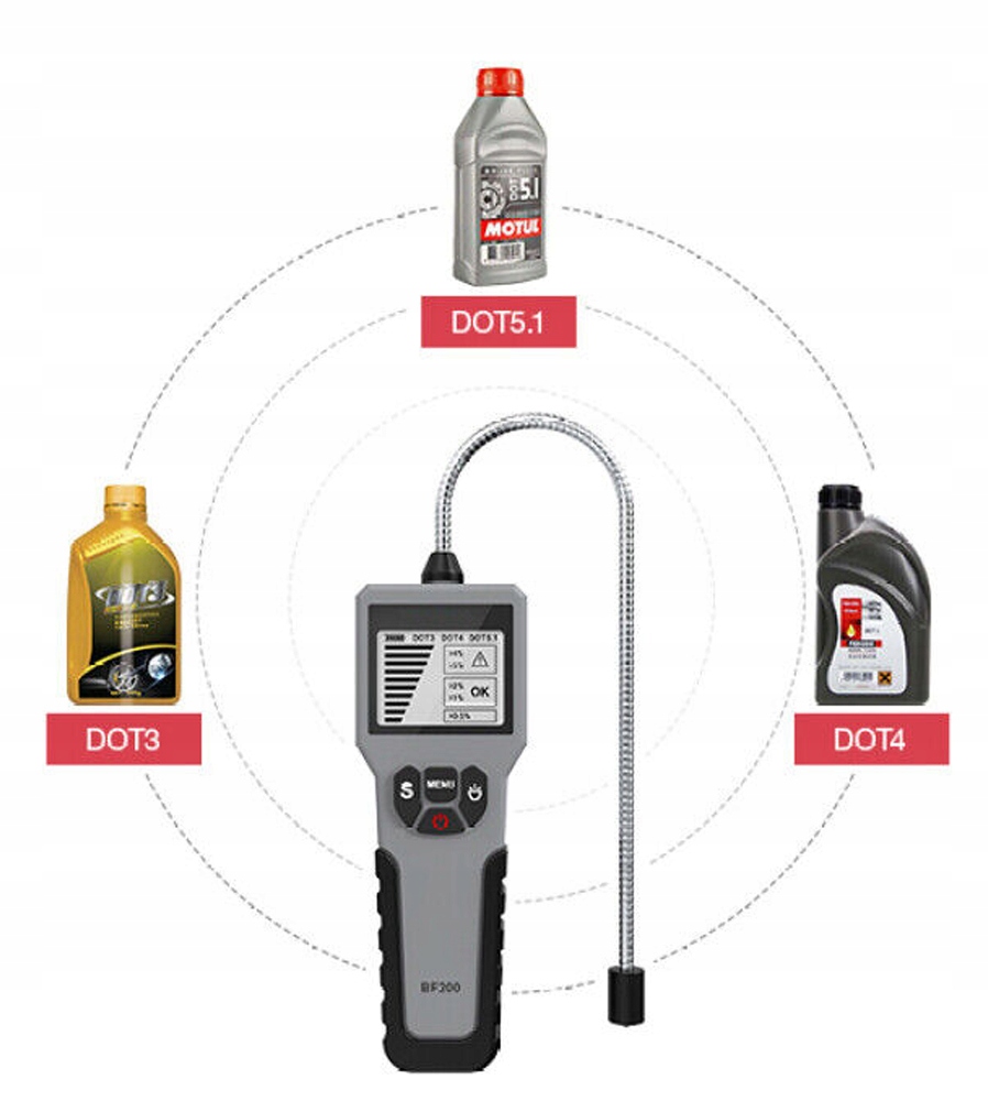 - Высокочувствительный прецизионный датчик позволяет быстро и точно обнаружить тормозную жидкость, а результат можно получить за считанные секунды.