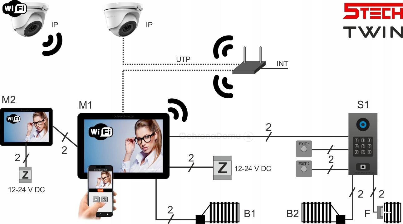 Современные цифровые WiFi-видеодомофоны серии TWIN – это простая установка, современный дизайн и расстояние до более 300 метров, а также управление приложениями (Tuya Smart) с вашего телефона. Это лишь некоторые из многих преимуществ этого 2-проводного решения. Пользователь может управлять (открывать) 3 независимыми устройствами. На практике это обычно калитка и двое автоматических ворот. Только TWIN 5TECH имеет цифровые ЖК-мониторы с 10-дюймовым сенсорным экраном. Подробнее на ОхронаДу. К устройствам прилагается инструкция на польском языке.