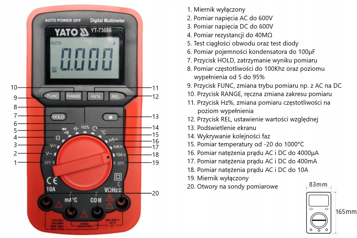 Универсальный измеритель YT-73086 с автоматическим диапазоном для каждого измерения позволяет выполнять базовые и расширенные электрические измерения. Отличительной функцией мультиметра является определение чередования фаз, что позволяет быстро проверить, подключено ли устройство напрямую к трехфазному источнику питания.