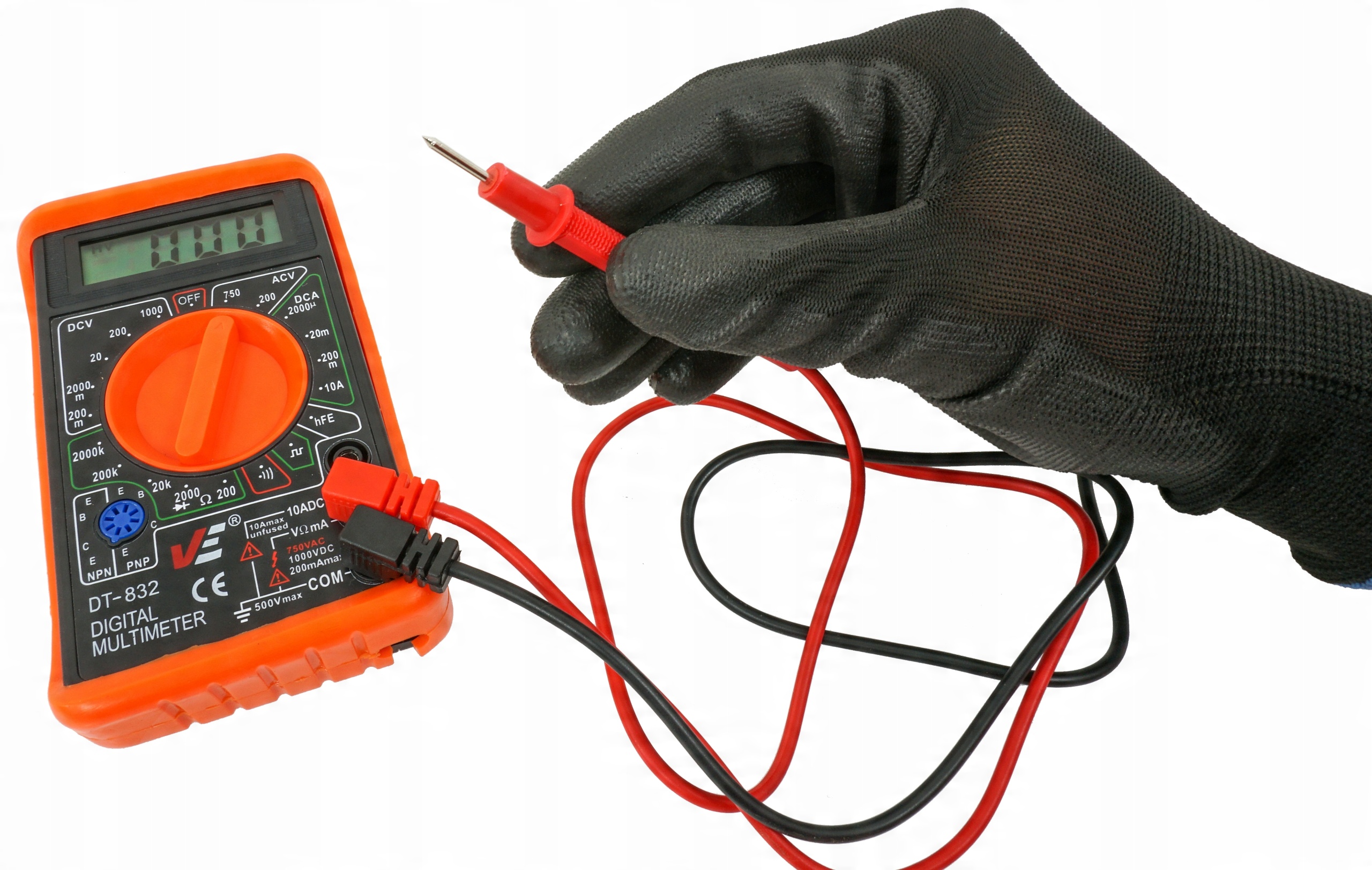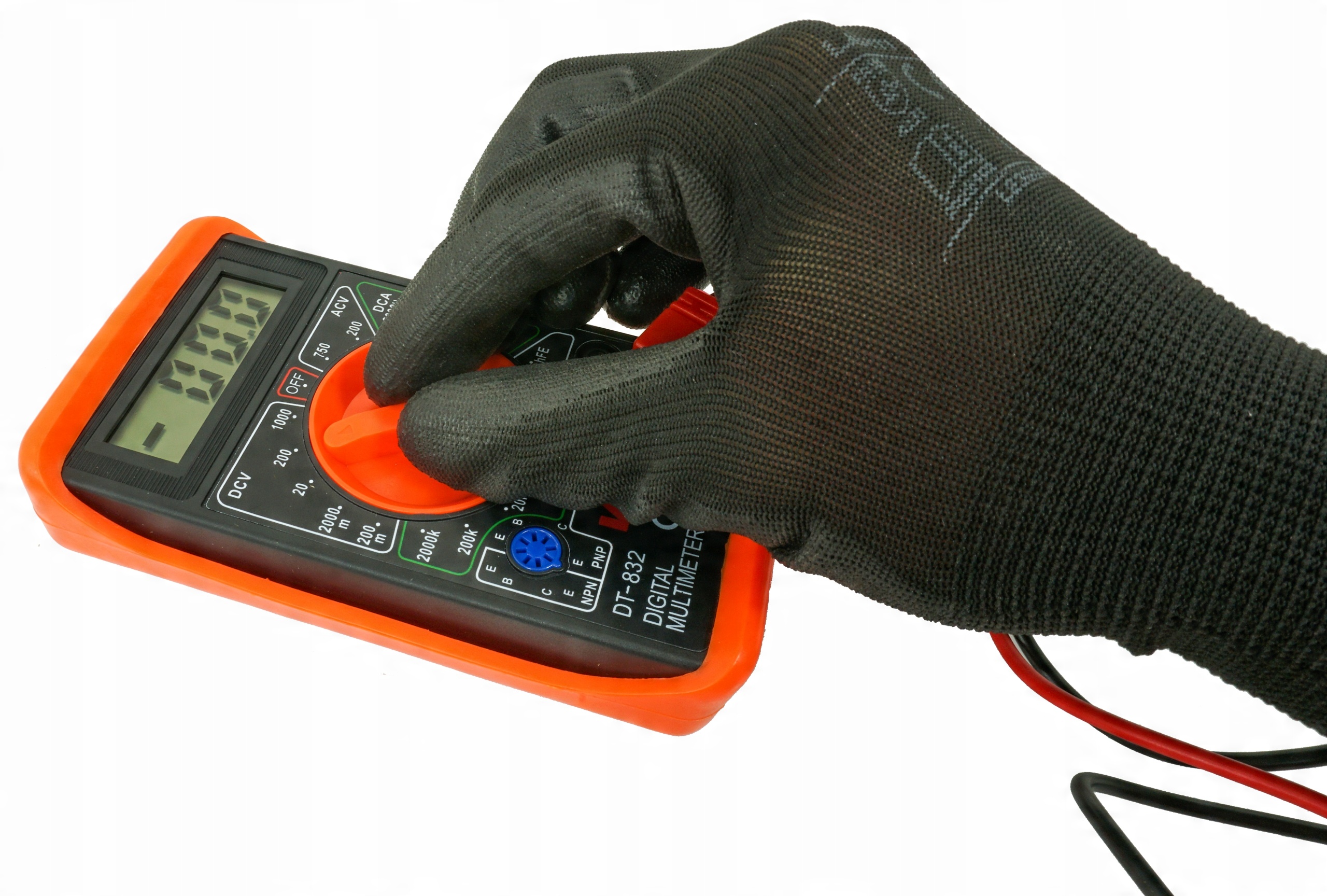 Цифровой мультиметр Verke DT832 разработан в соответствии со стандартом EN61010 и характеризуется категорией измерения CAT I (перенапряжение) и вторым классом защиты. Этот прибор выполняет измерения постоянного и переменного напряжения, постоянного тока, сопротивления, целостности (акустический сигнал), проверку диодов и hFE (усиление постоянного тока в цепи транзистора WE). Счетчик генерирует синусоидальный или прямоугольный тестовый сигнал частотой 50 Гц и уровнем 5 В размах.