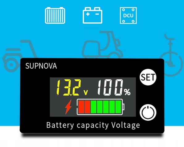 Индикатор заряда аккумулятора 8–100 В постоянного тока с сигнализацией и термометром