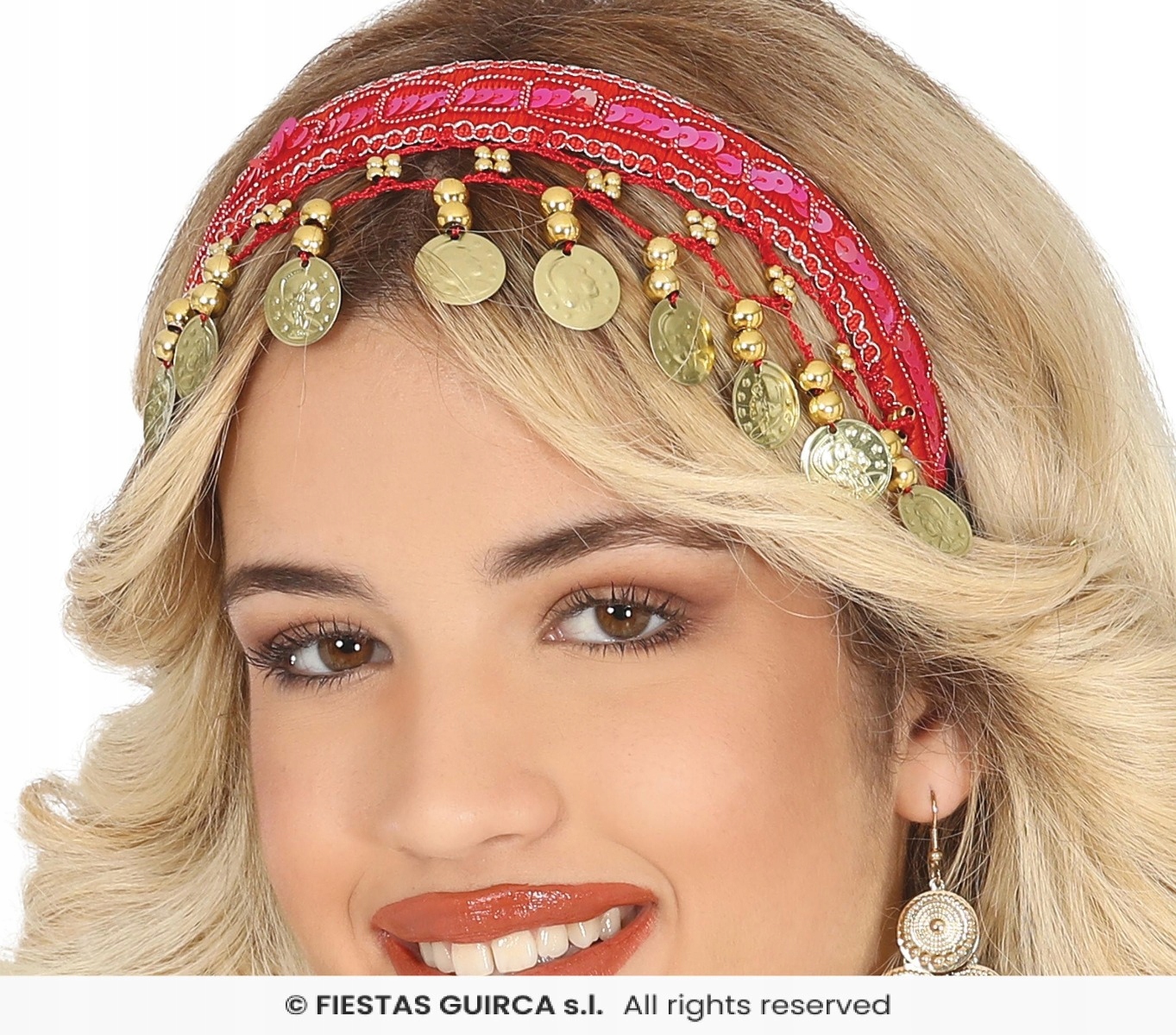 The Coin Band - это декоративная повязка на голову, украшенная блестящими золотыми монетами, которые будут великолепны как элемент маскировки танцовщицы брюшной полости, принцессы с Ближнего Востока или восточного стиля. Аккуратно гудит во время движения, добавляя характер к каждому производительности и тематическому событию.