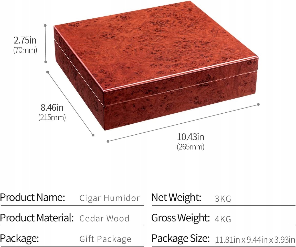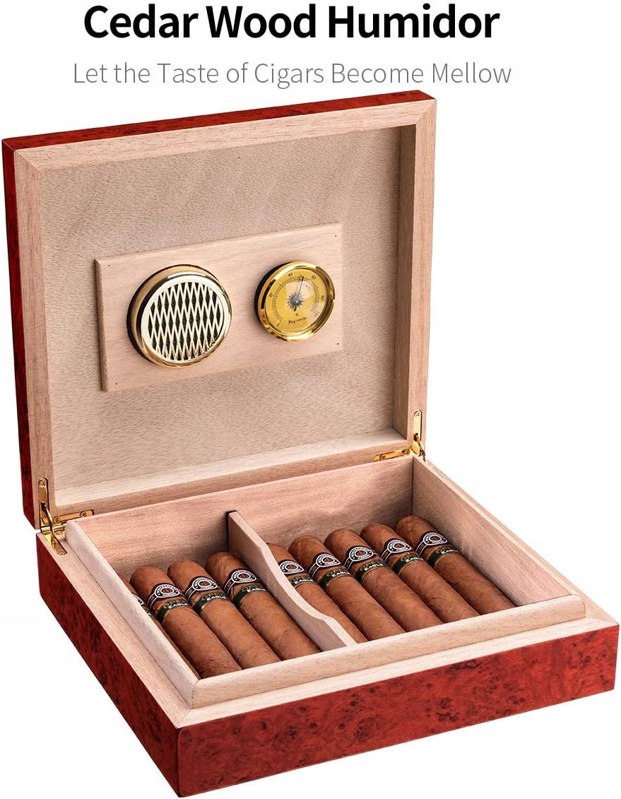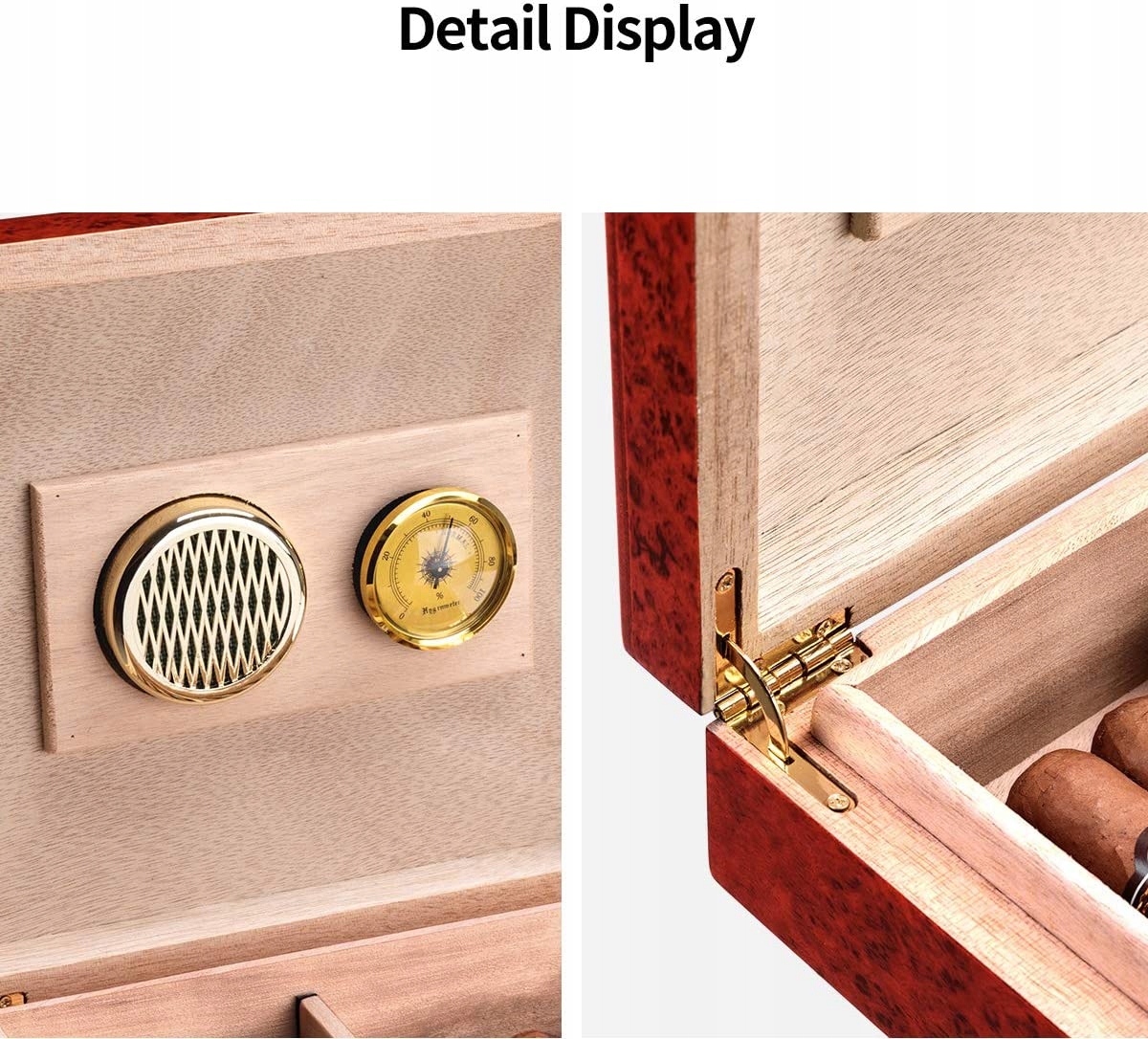 Материал :Наш хьюмидор для сигар изготовлен вручную из испанского кедра и облицовки из массива дерева, а окраска и полировка поверхности фортепиано делают его очень гладким на ощупь и устойчивым к пятнам. С гибким шарниром из нержавеющей стали, легко открывается на 90 градусов и закрывается, прочный и долговечный. Особенность: Эта коробка для сигар вмещает от 15 до 20 сигар в зависимости от кольца, которое представляет собой просторное место для ваших палочек. (Сигары в комплект не входят) Верхняя крышка имеет стеклянный дисплей, который обеспечивает четкий обзор сигар, не открывая крышку. Устойчивое к царапинам черное фланелевое дно защитит хьюмидор от трения и повреждений. Дизайн: Этот хьюмидор оснащен гигрометром. Специальная конструкция системы уплотнений для поддержания влажности позволяет сохранить сигары свежими на долгие годы. Он также имеет съемную перегородку из кедра, которая поможет вам организовать вашу коллекцию. Случаи: простой, но элегантный дизайн подойдет к любой мебели, станет отличным украшением вашего дома, а также подойдет для бизнеса, высокого класса и щедрости. Наш хьюмидор для сигар сочетает в себе тщательное мастерство изготовления и древесину испанского кедра, создавая идеальные условия для хранения сигар для любителей сигар. Этот хьюмидор для сигар из кедрового дерева станет отличным дополнением к вашим сигарам, а также подойдет в качестве подарка.