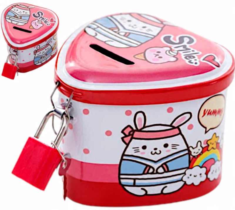 Красочная металлическая копилка с замком станет идеальным местом для хранения сбережений вашего ребенка.