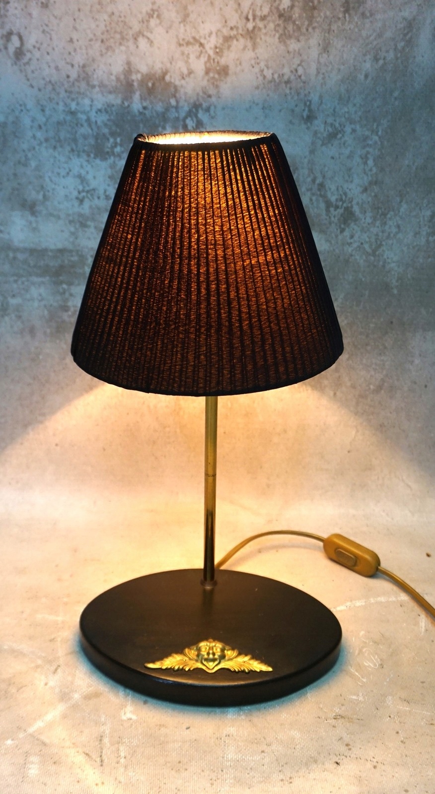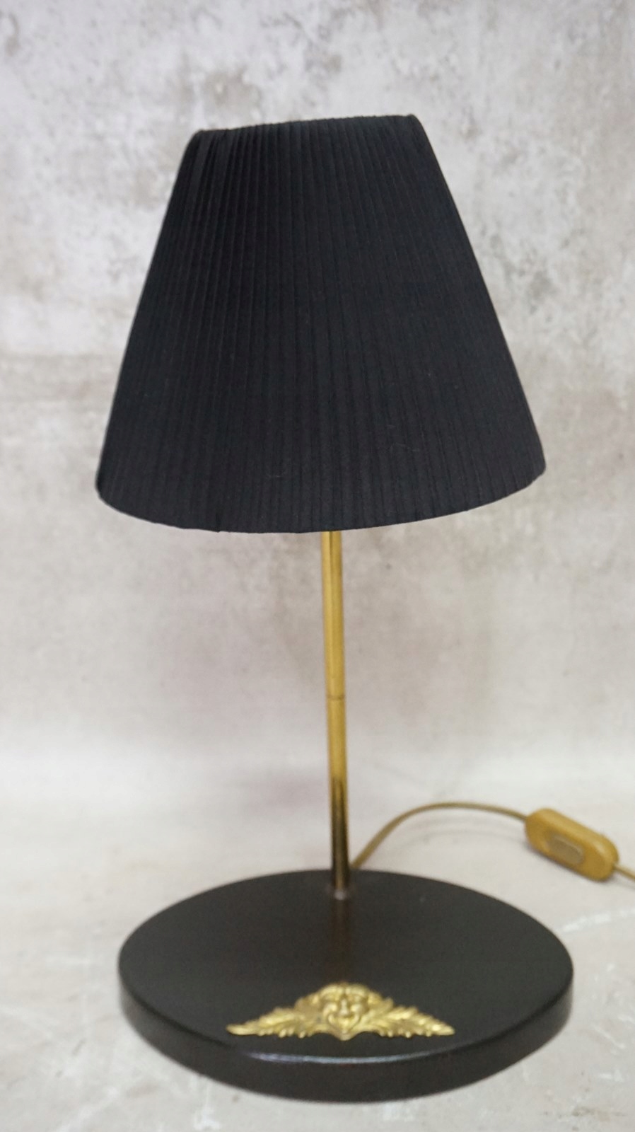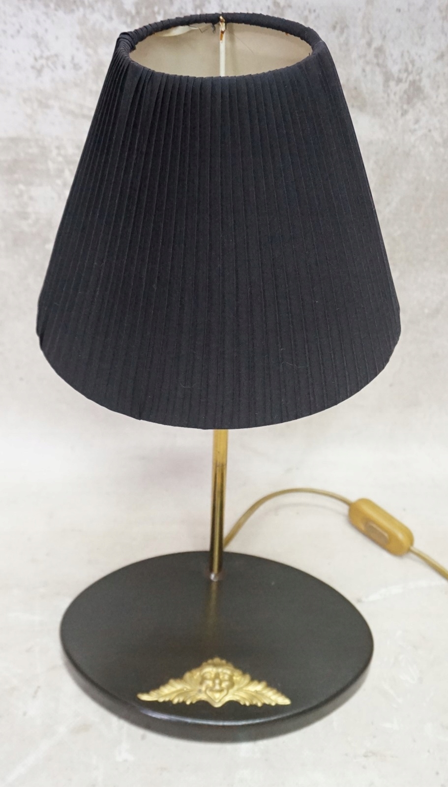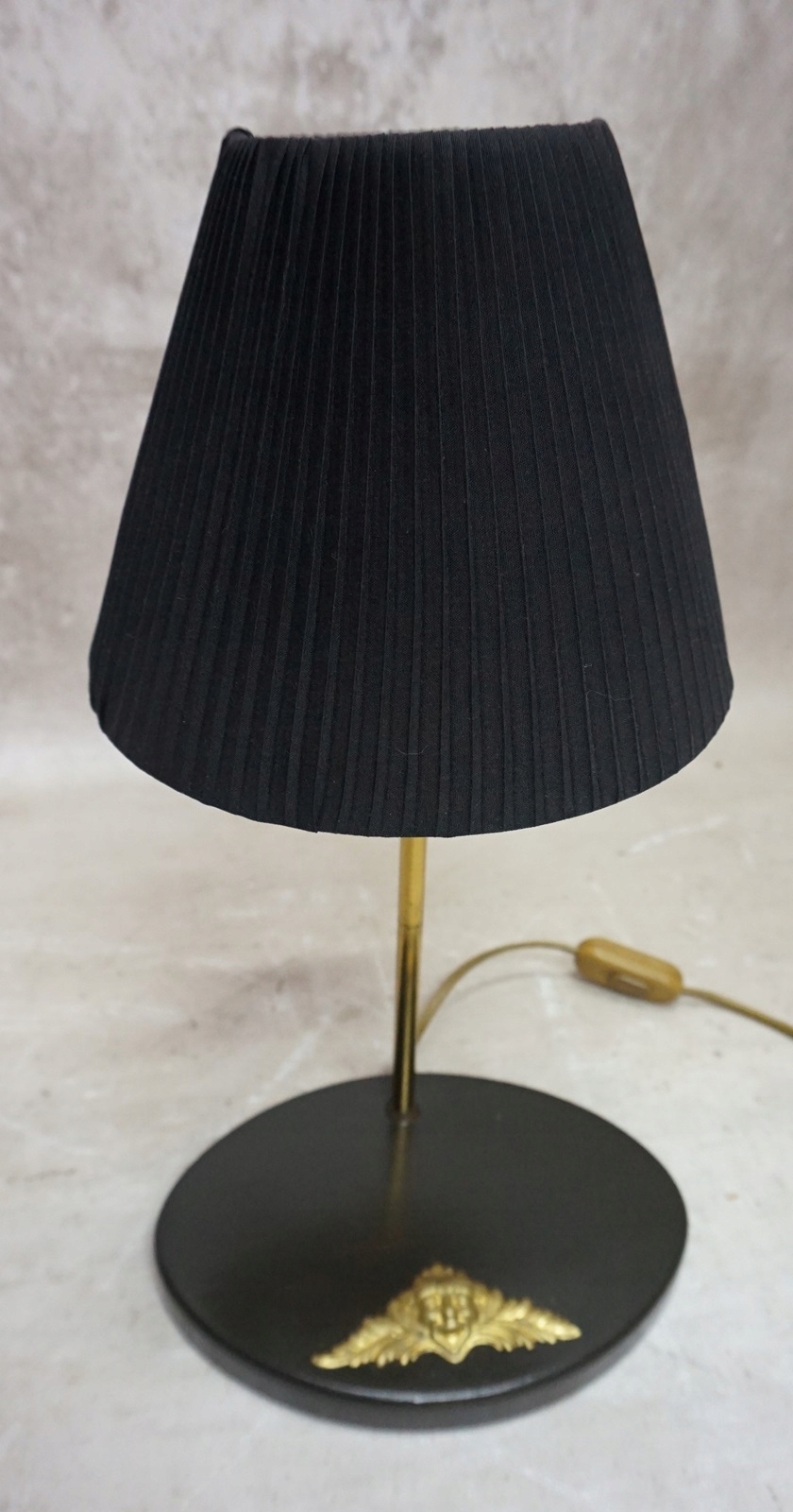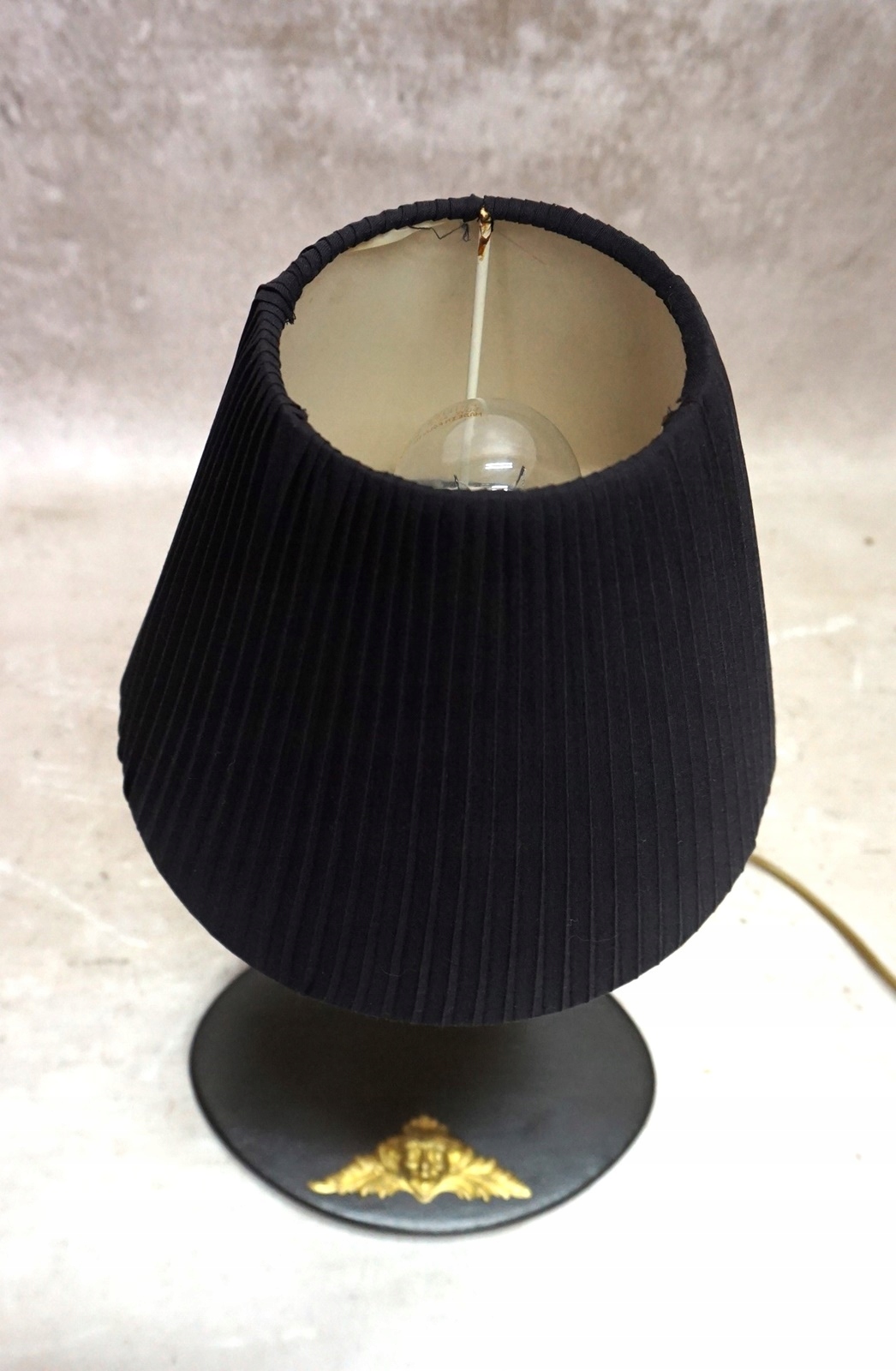 Светильник имеет черный плиссированный абажур.
