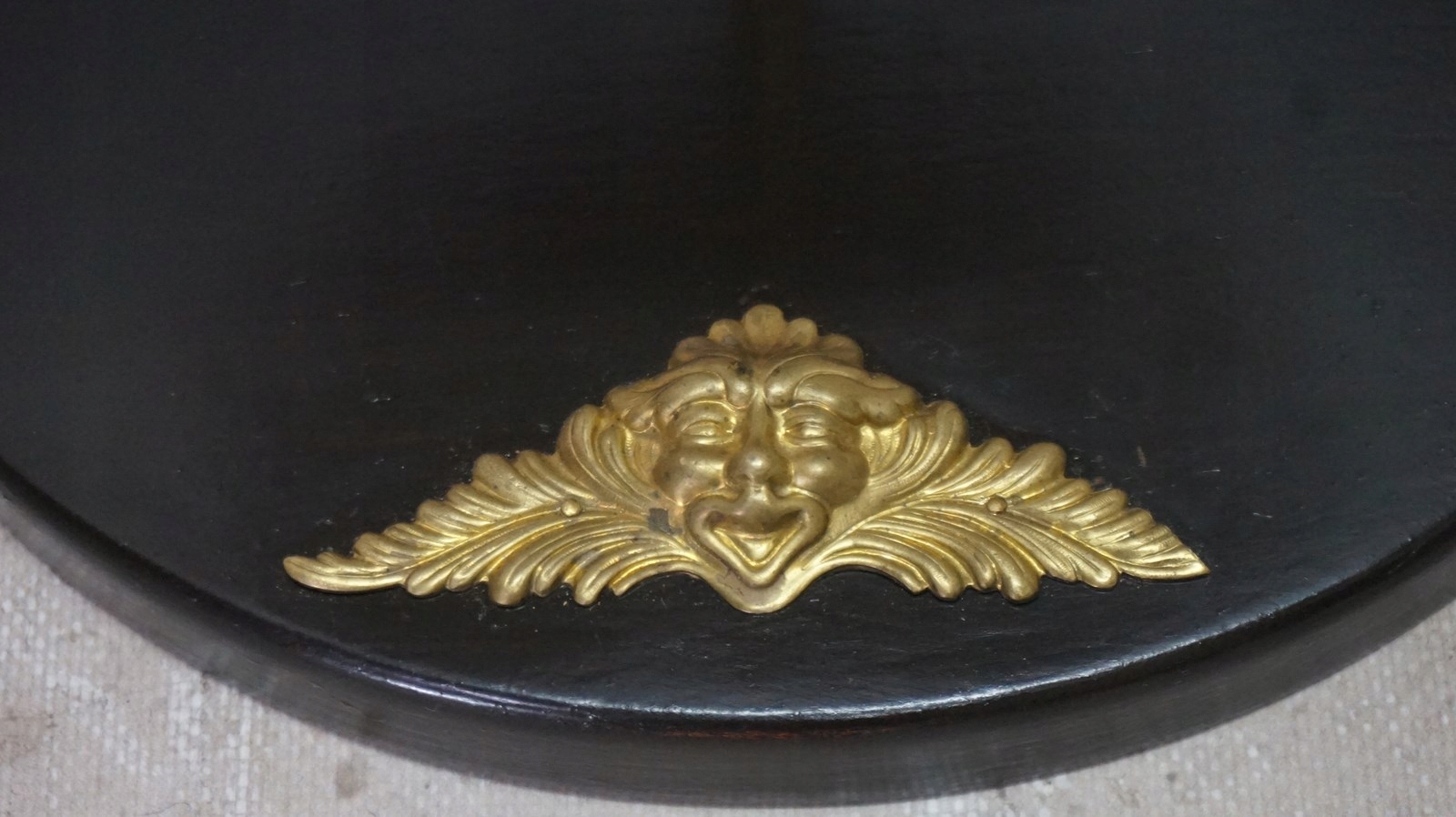 Украшен латунным декором.