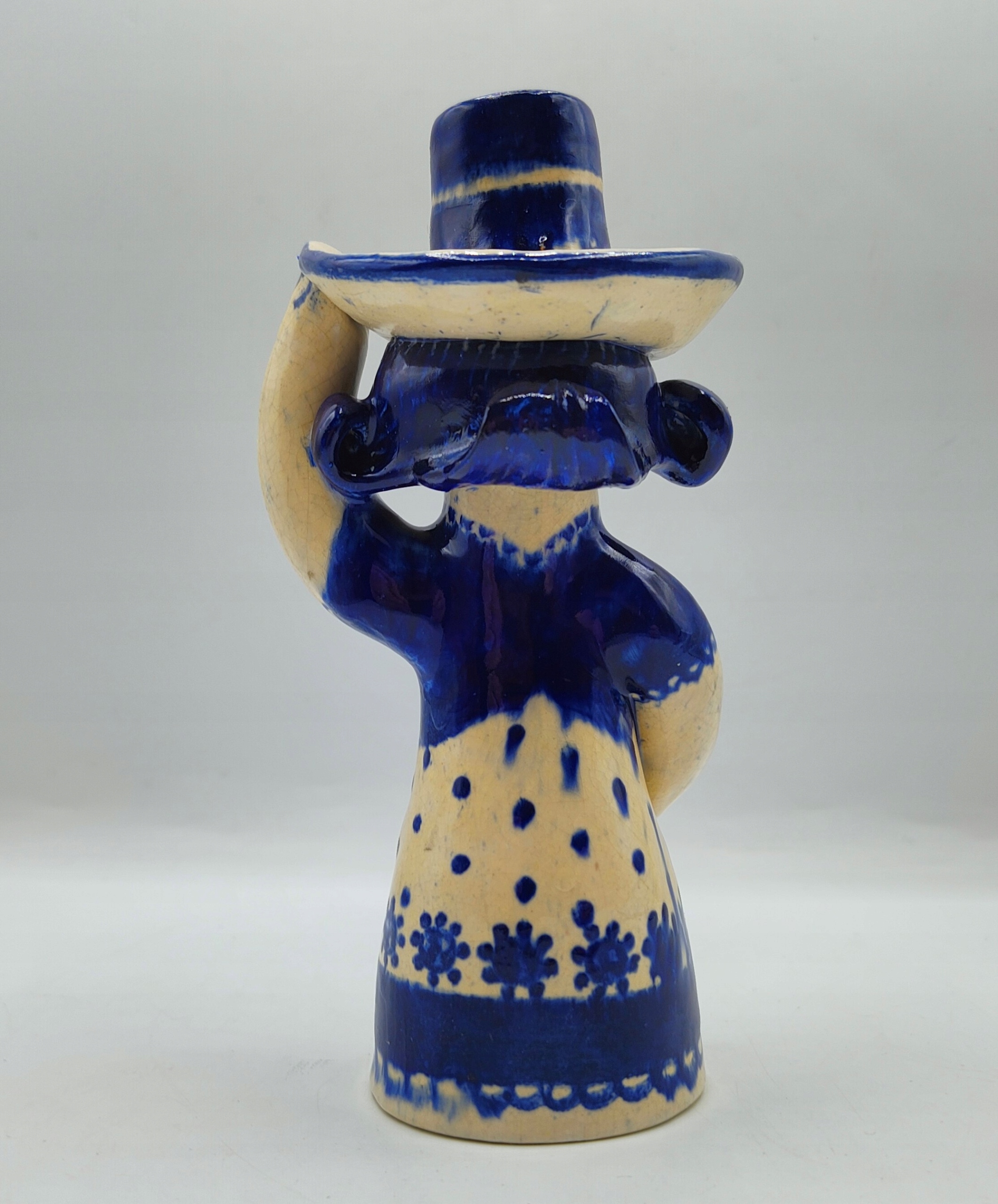 Интересная СТАРАЯ статуэтка, кобальтово-синяя женщина в ШАПКЕ.