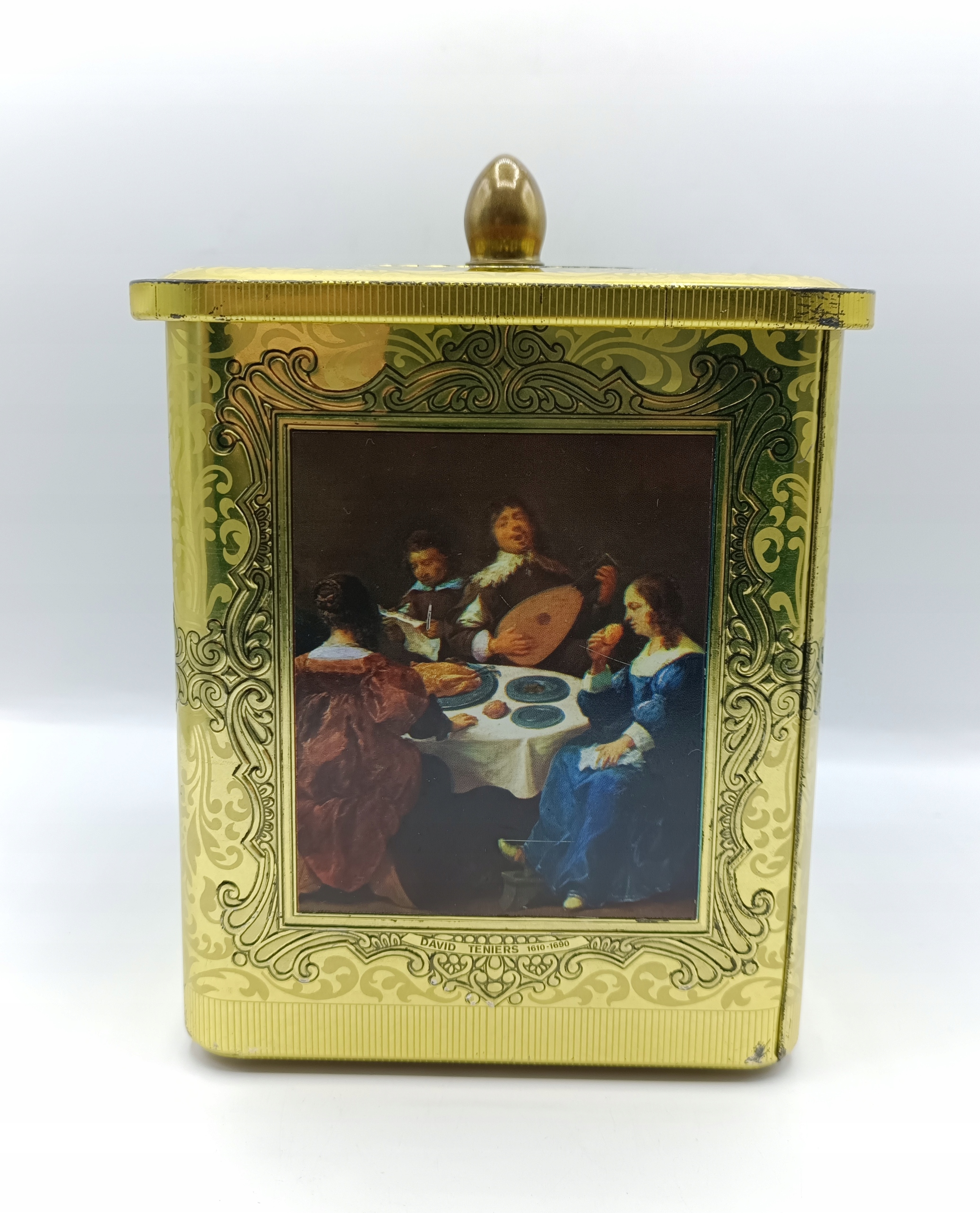 Интересная старая металлическая банка, коллекционная шкатулка с крышкой,
