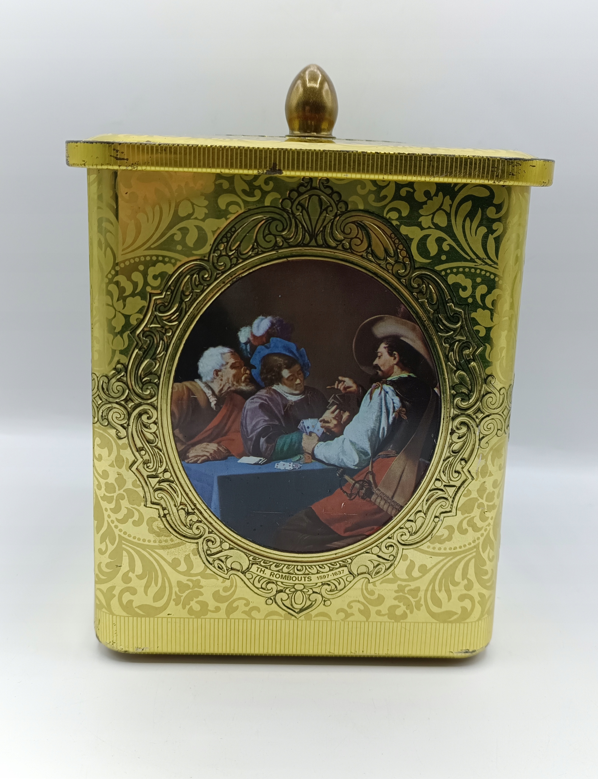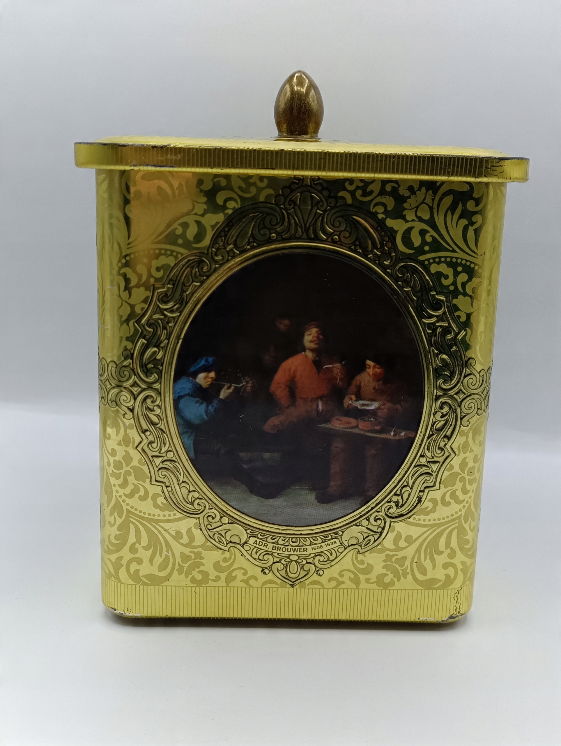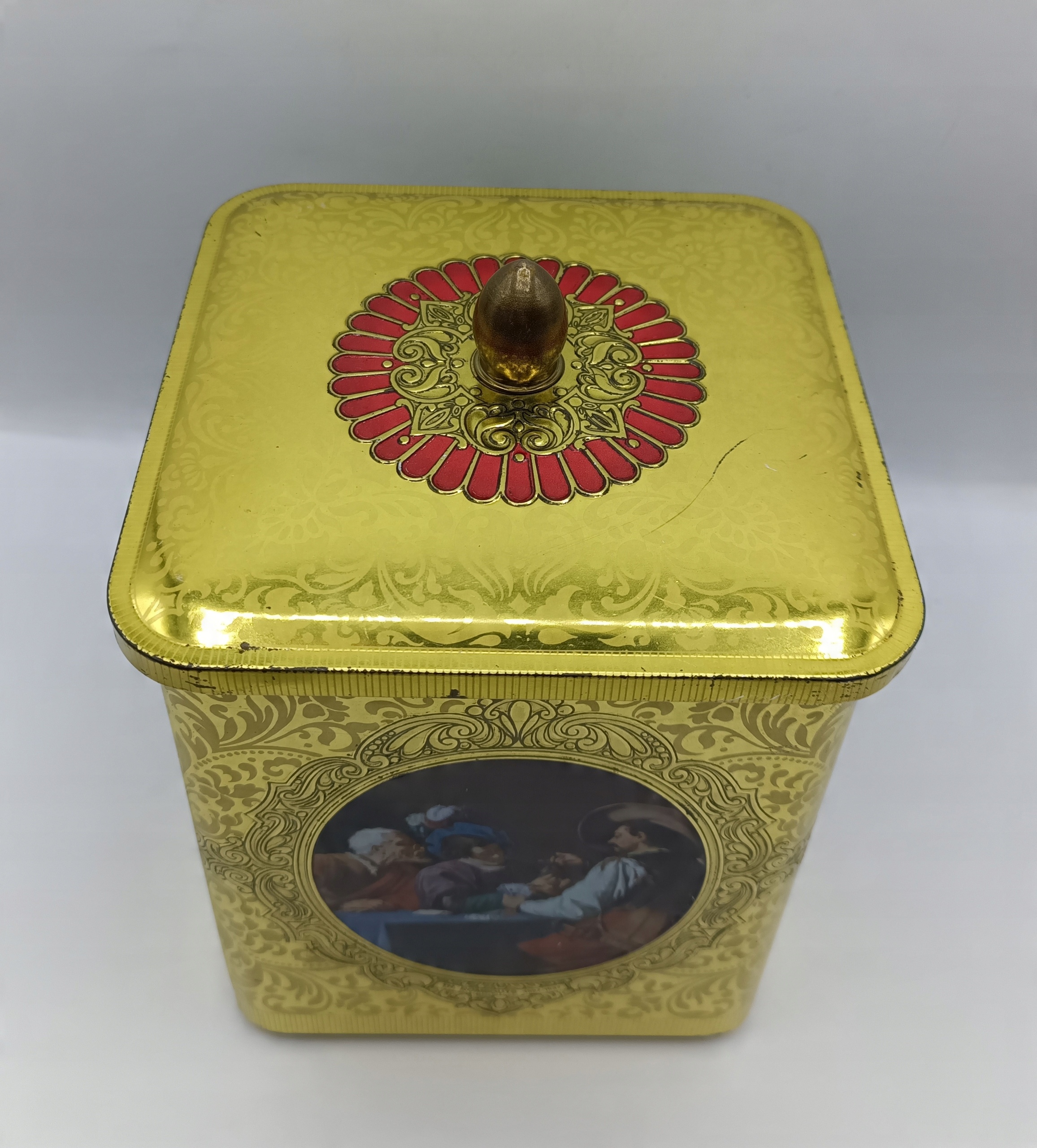 Интересная старая металлическая банка, коллекционная шкатулка с крышкой,
