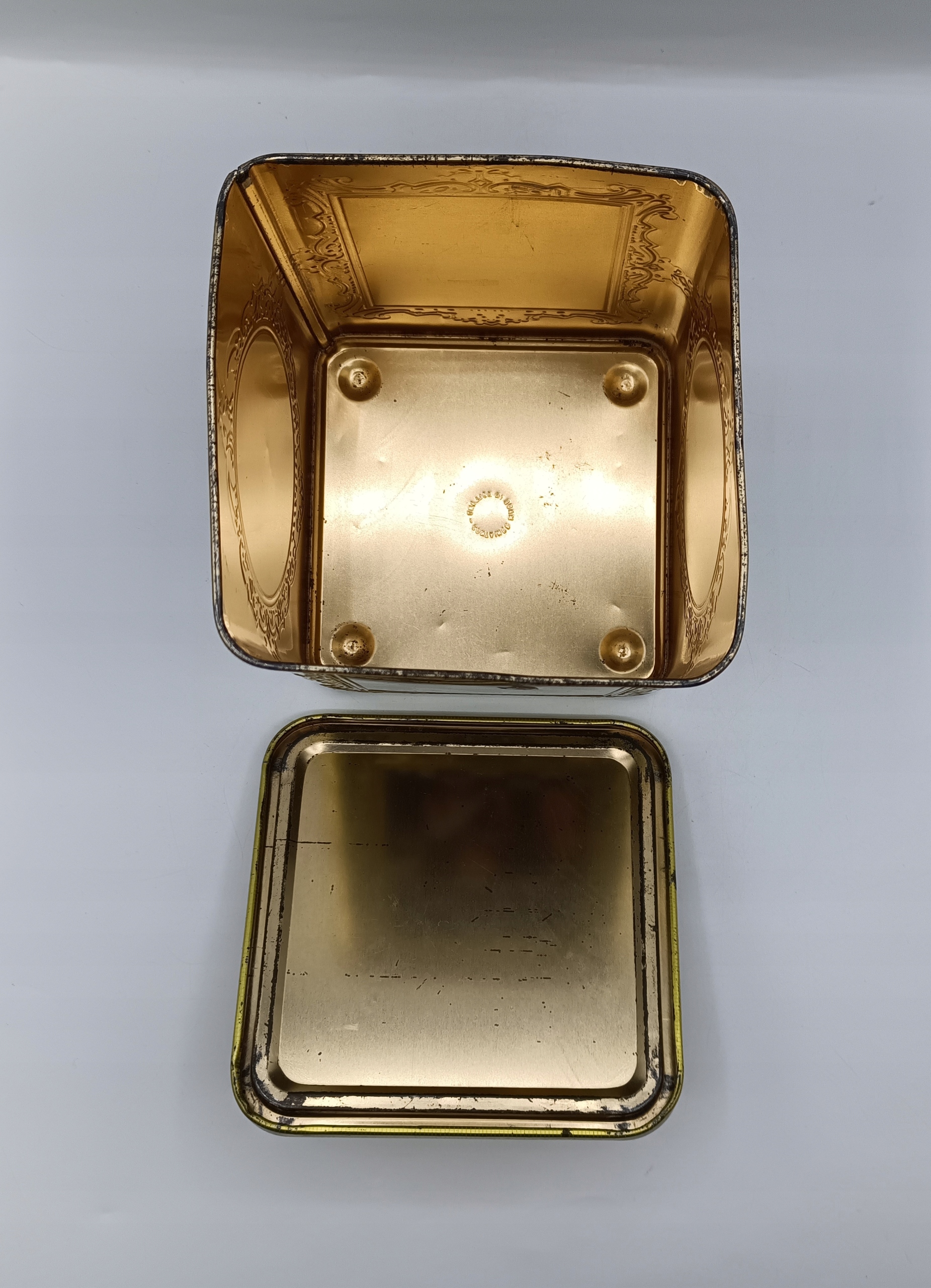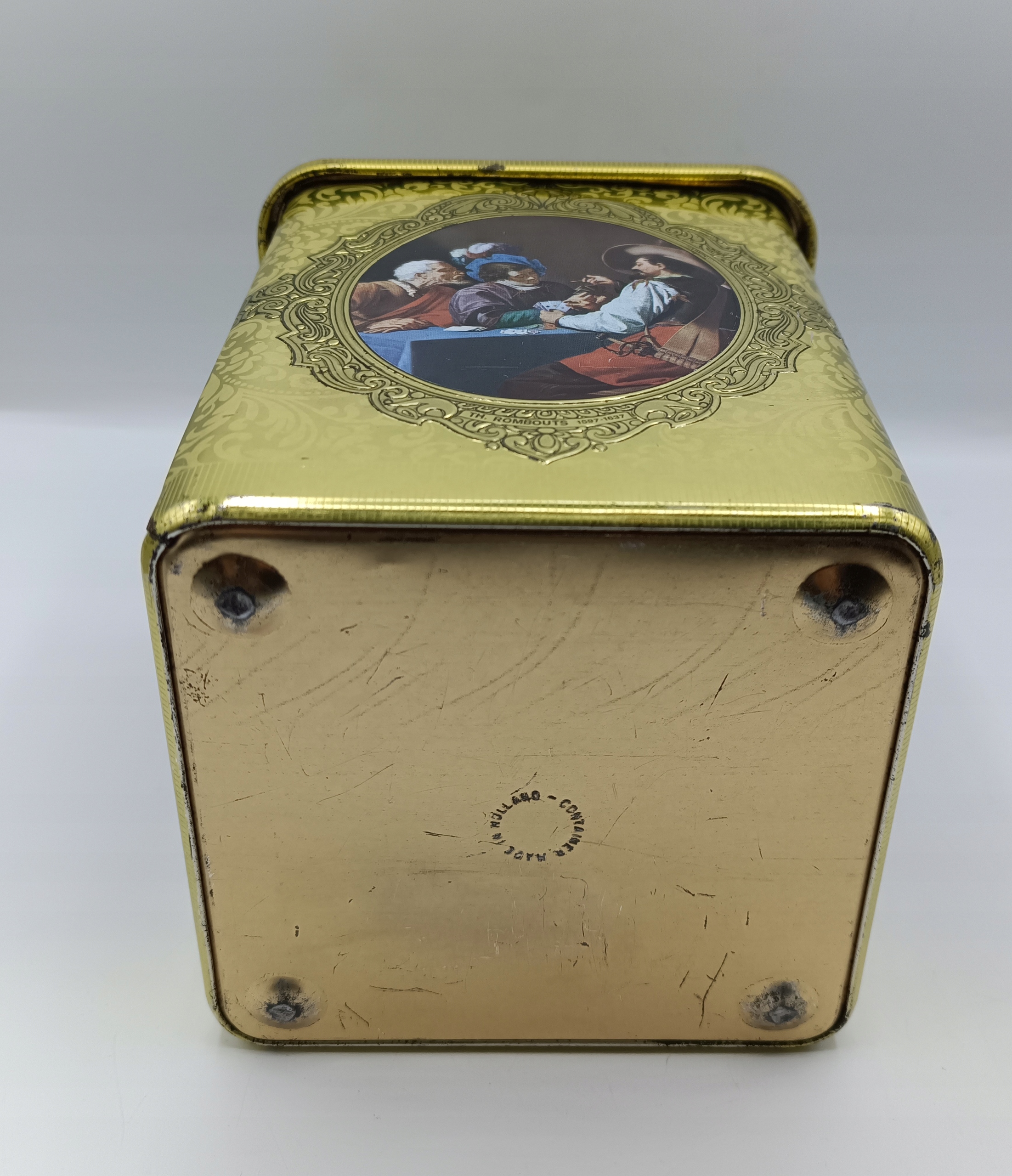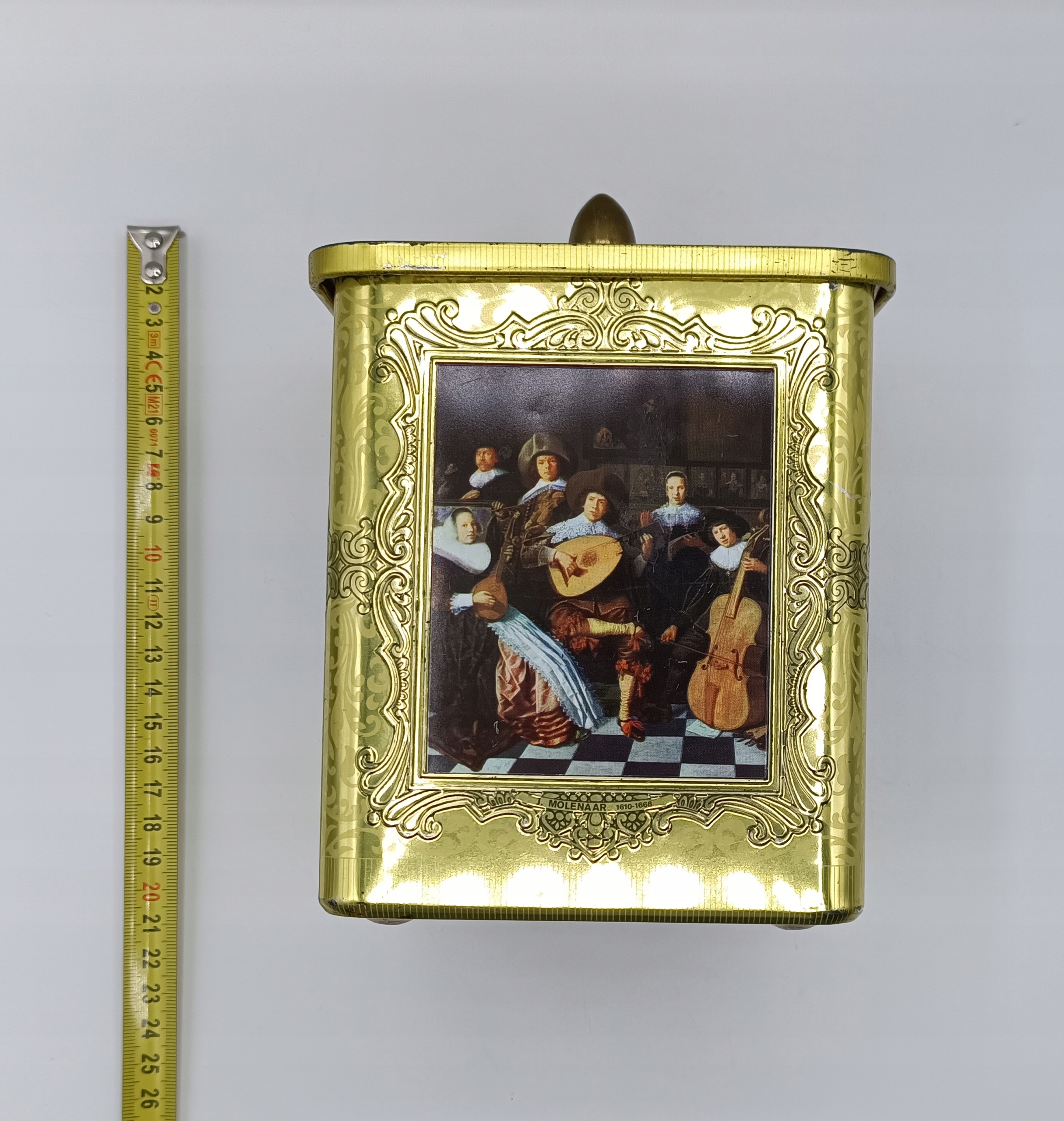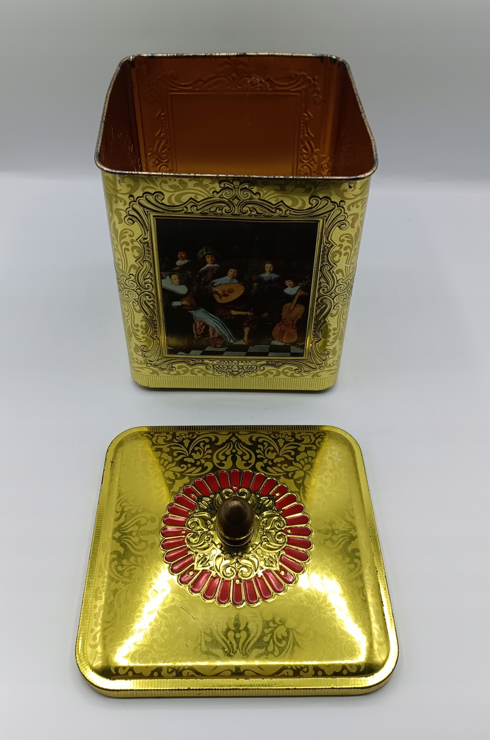 Интересная старая металлическая банка, коллекционная шкатулка с крышкой,