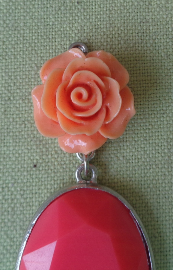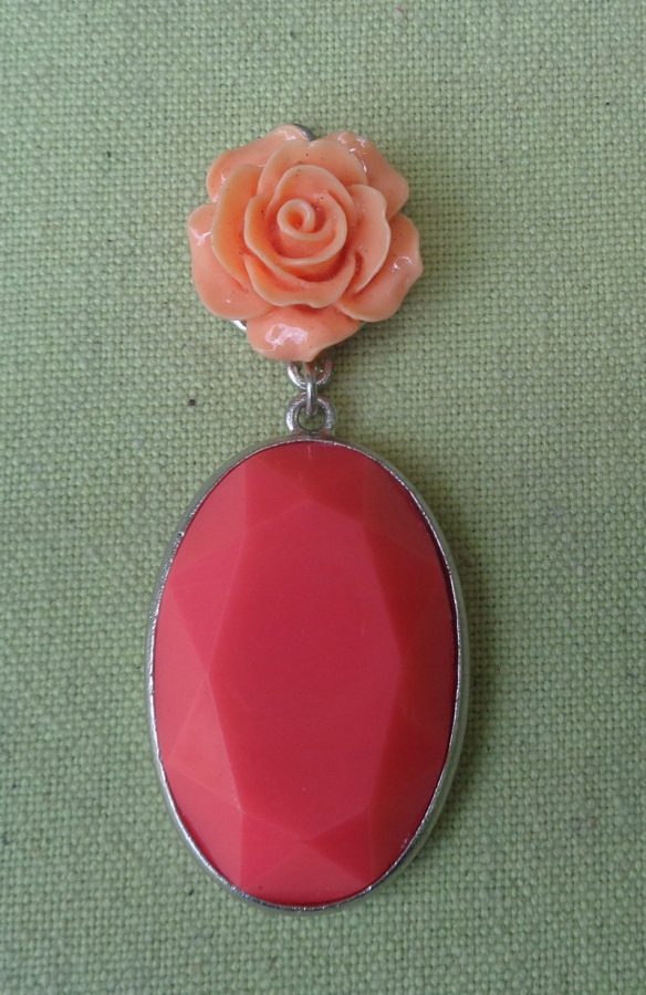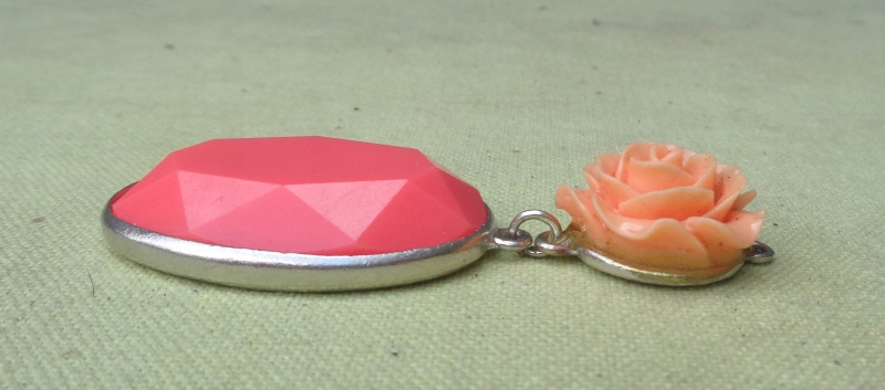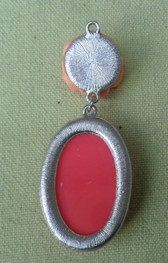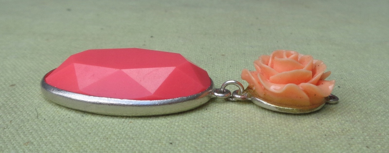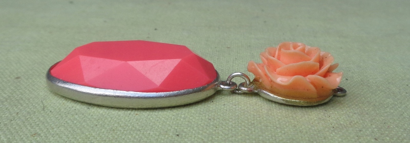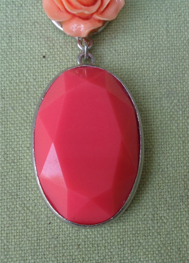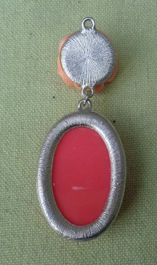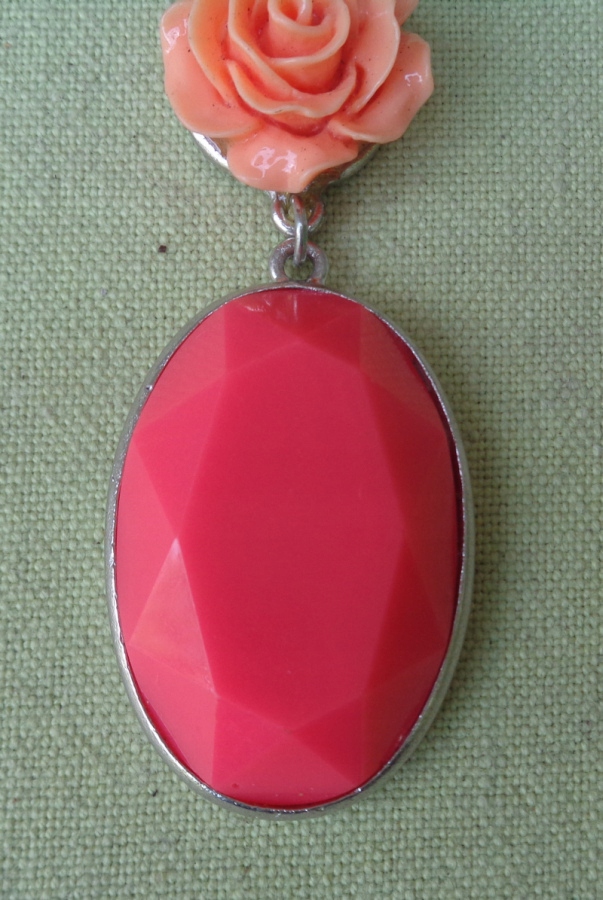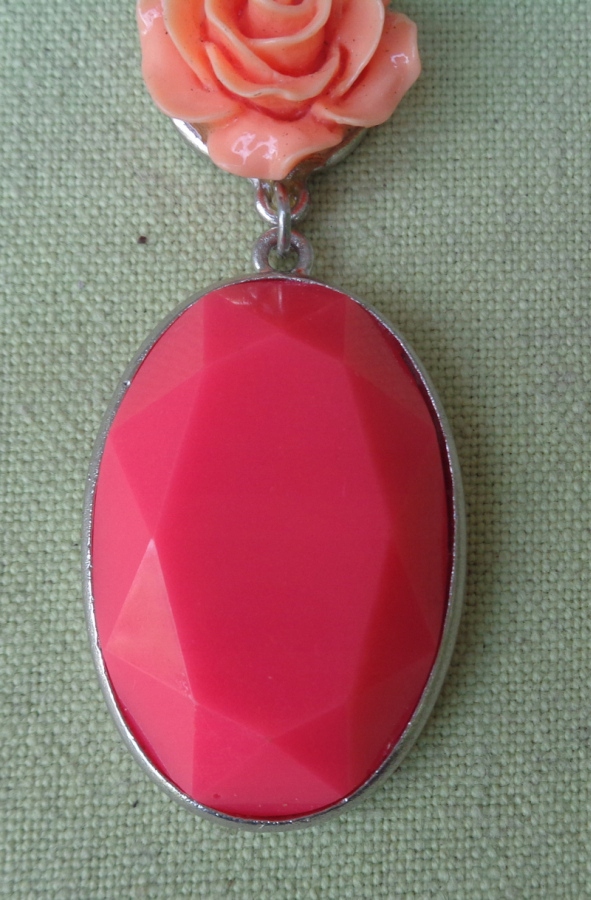 Интересное, интересное колье из 1980-х. Экспонат выполнен из пластика и металла. Он состоит из двух частей, соединенных между собой. Наверху интересная роза розового оттенка. В нижней части овальный кулон интересной формы. Металл покрыт серебром. Экспонат не поврежден. Всем рекомендую.