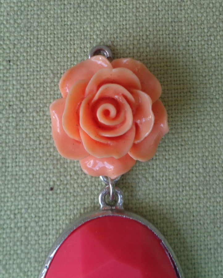 Размеры: Общая длина: 6,2 см. Роза: Диаметр: 2 см. Нижний кулон: Длина: 3,7 см. Ширина: 2,6 см.