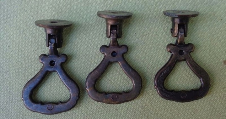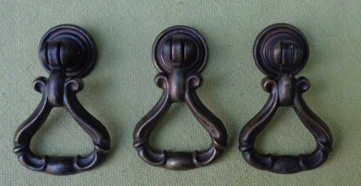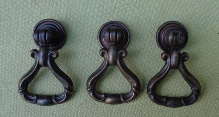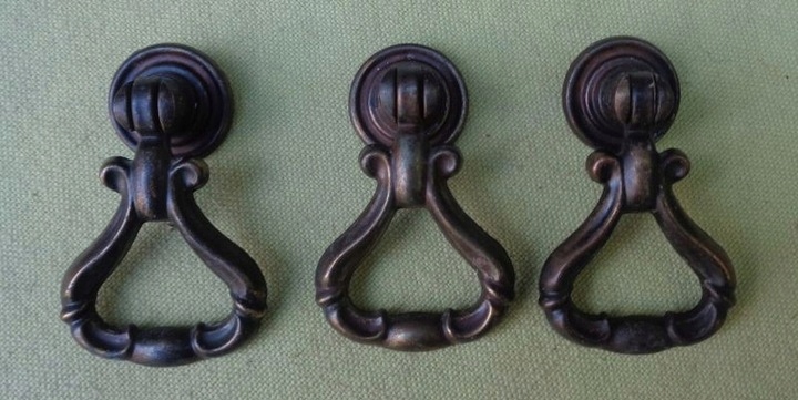 интересные, интересные металлические ручки мебели. Экспонаты были сделаны из металла. Три ручки были украшены интересным декоративным орнаментом, сделанным в металле. Орнамент в форме напоминает эклектичные закономерности. Я рекомендую это для всех.
