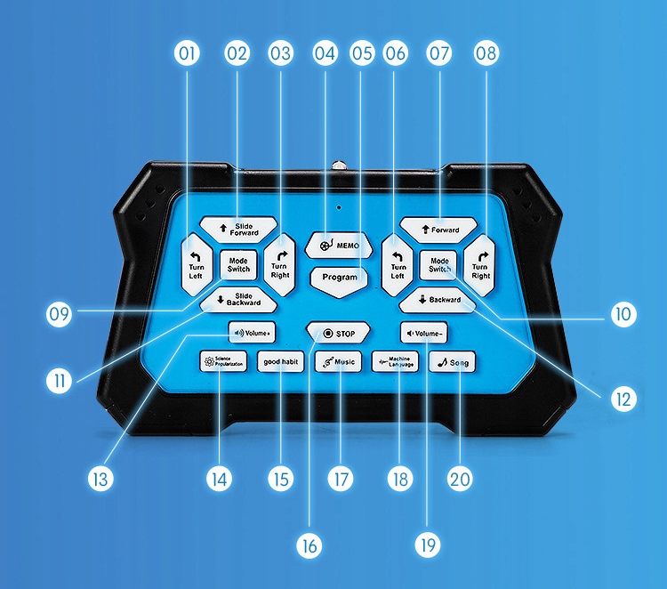 ⭐ демо -кнопка позволяет вам представлять навыки танца робота. У игрушки есть 3 демонстрационные программы.