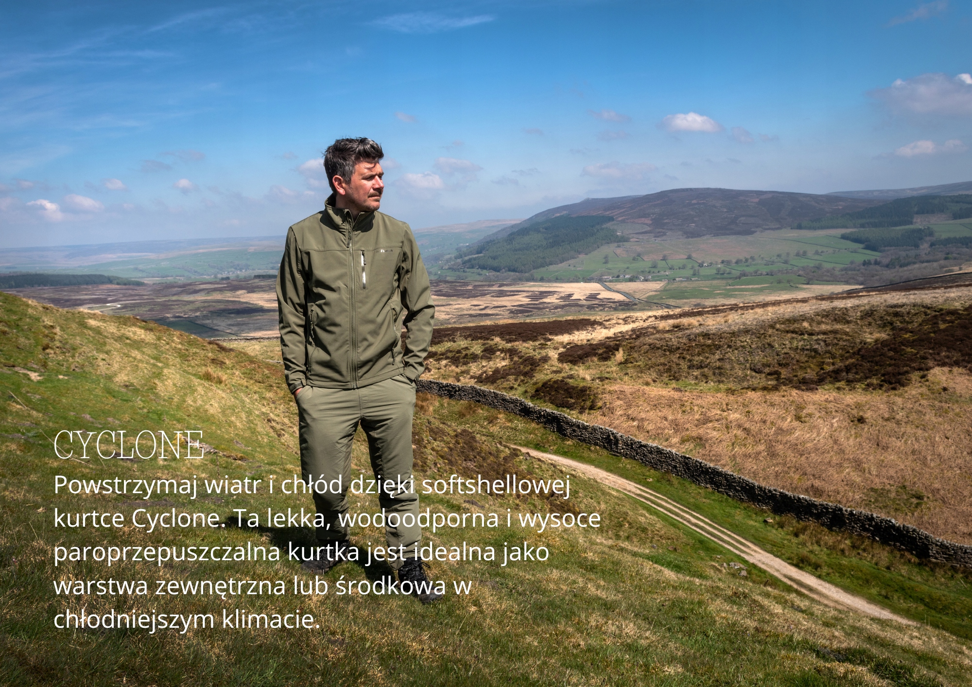 Материал обеспечивает высокую водостойкость при 10000 ч / ч, не приклеивая внутренние швы. В куртке есть один внешний карман на груди , защищенный блоком Bryzgoszza . Внизу использовалась гибкая строка, которая позволяет остановить тепло внутри.