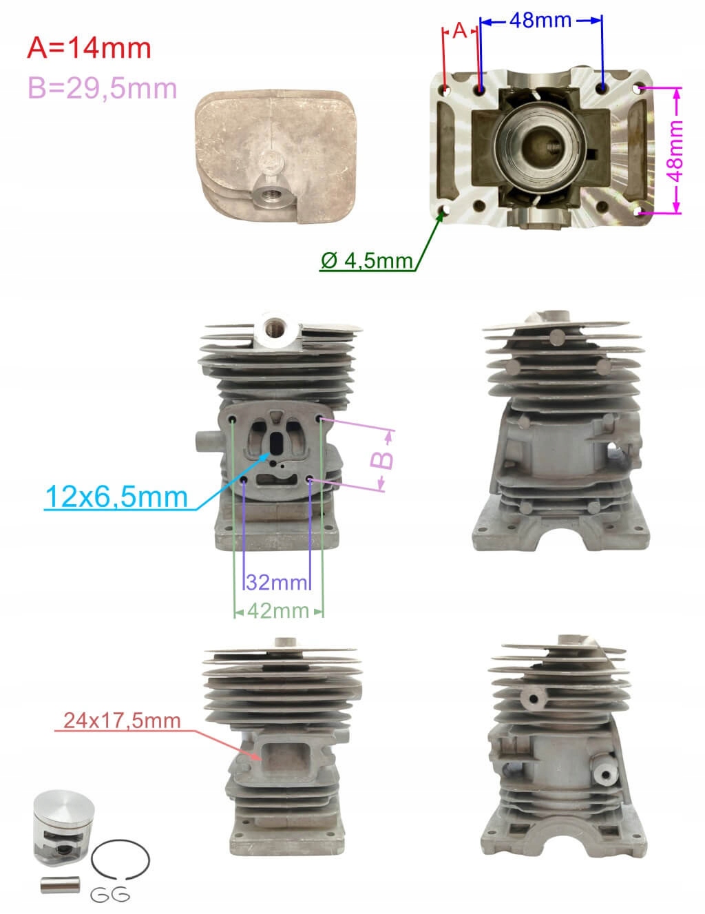 Цилиндр 37 мм SET STIHL MS170 2-MIX Замена