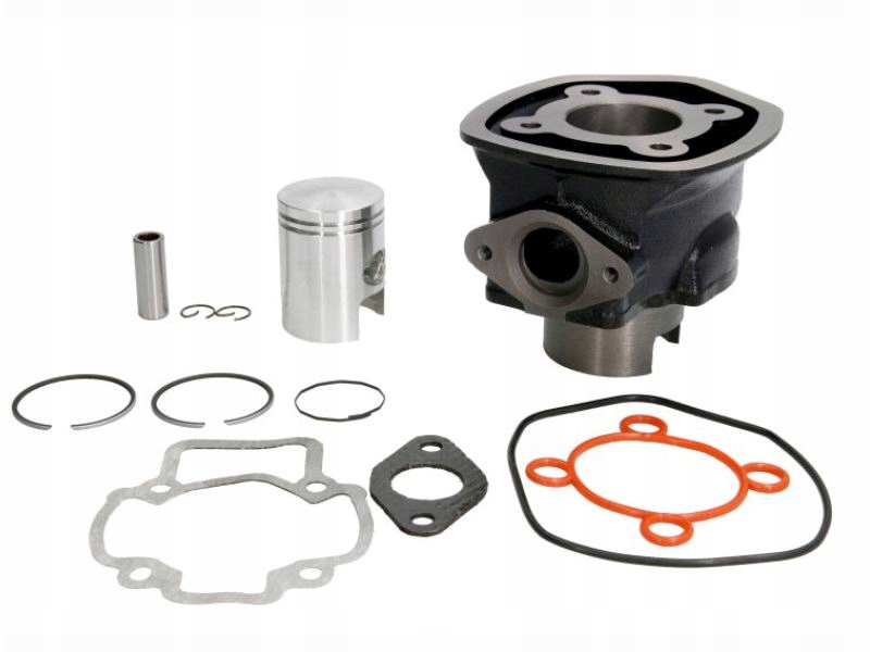 - Чугунный цилиндр, поставляется с поршнем, кольцами, пальцем, защитными приспособлениями для пальца и уплотнениями.
