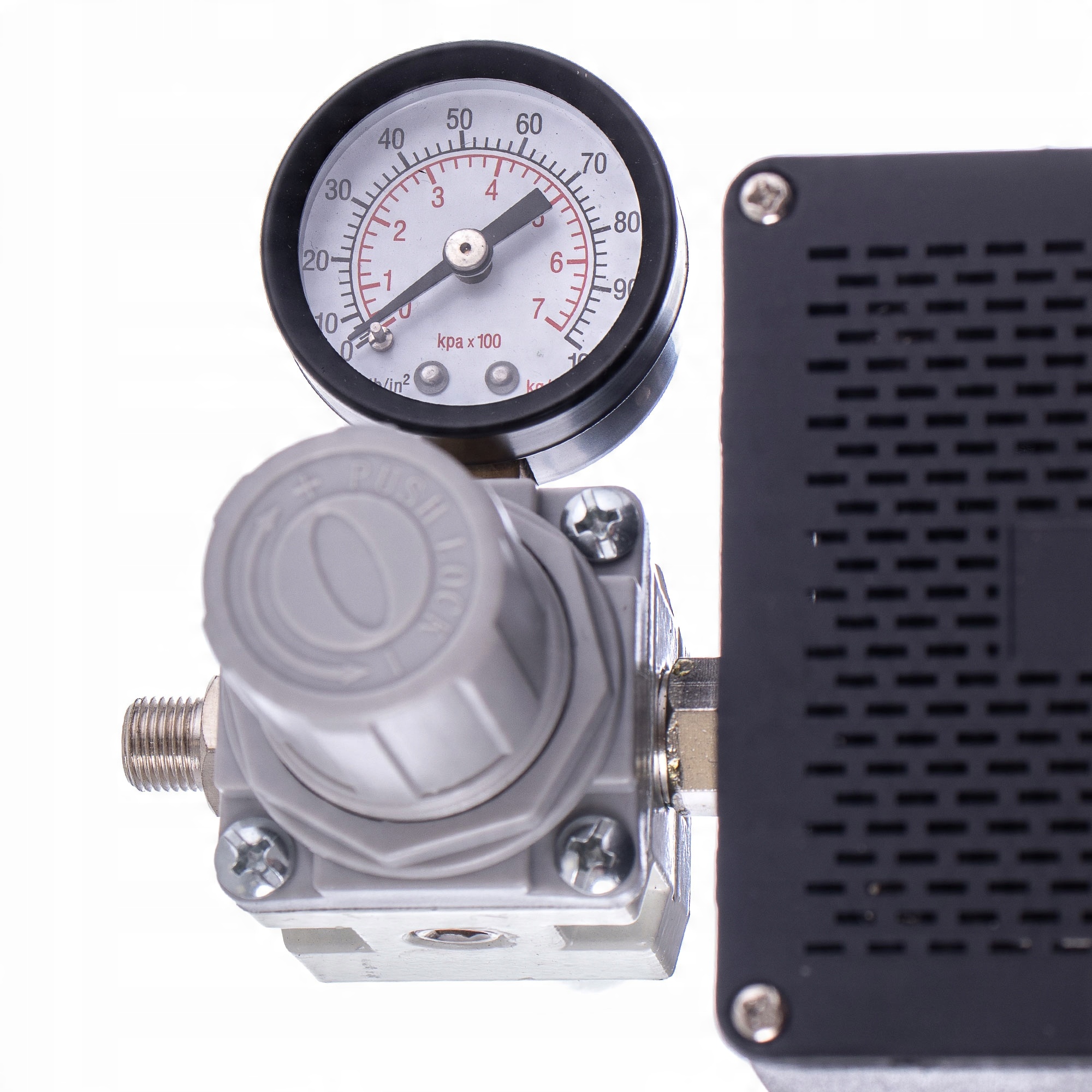 - редуктора с замком и фильтрованием: позволяет точно настройку давления. Блокада предотвращает случайную скрученную ручку. Фильтр ловит влагу из воздуха, продлевая срок службы инструментов и увеличивая качество приложенного краски,