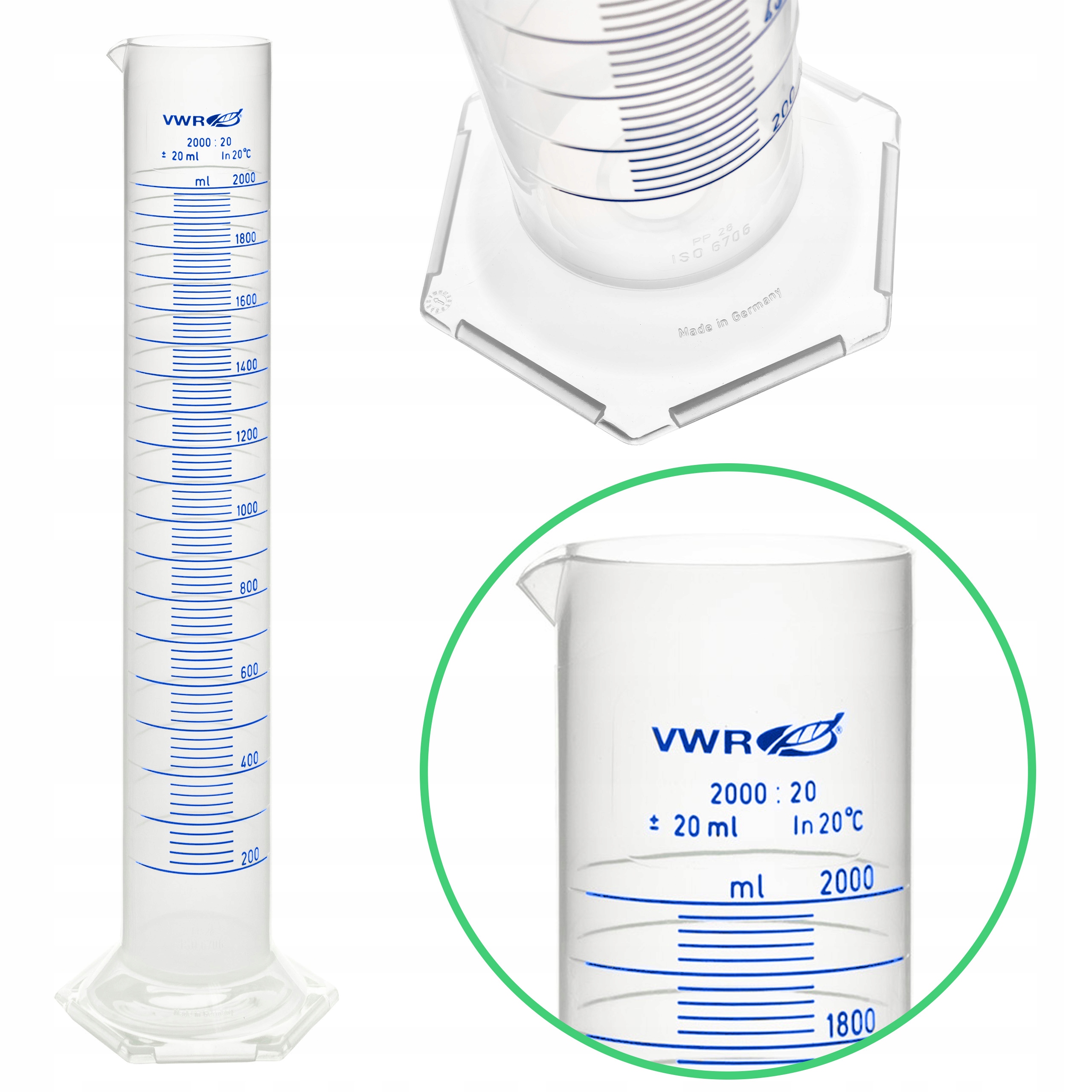 Циліндр мензурка мірний шкала синя PP основа шестигранна 2000 мл