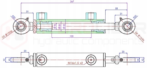 Цилиндровый цилиндр Гидравлический поршень 2-й St 25/16 Skok 100 мм L: 267 Гидролид