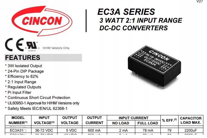 CINCON EC3A31 DC DC 72V - 5V DC
