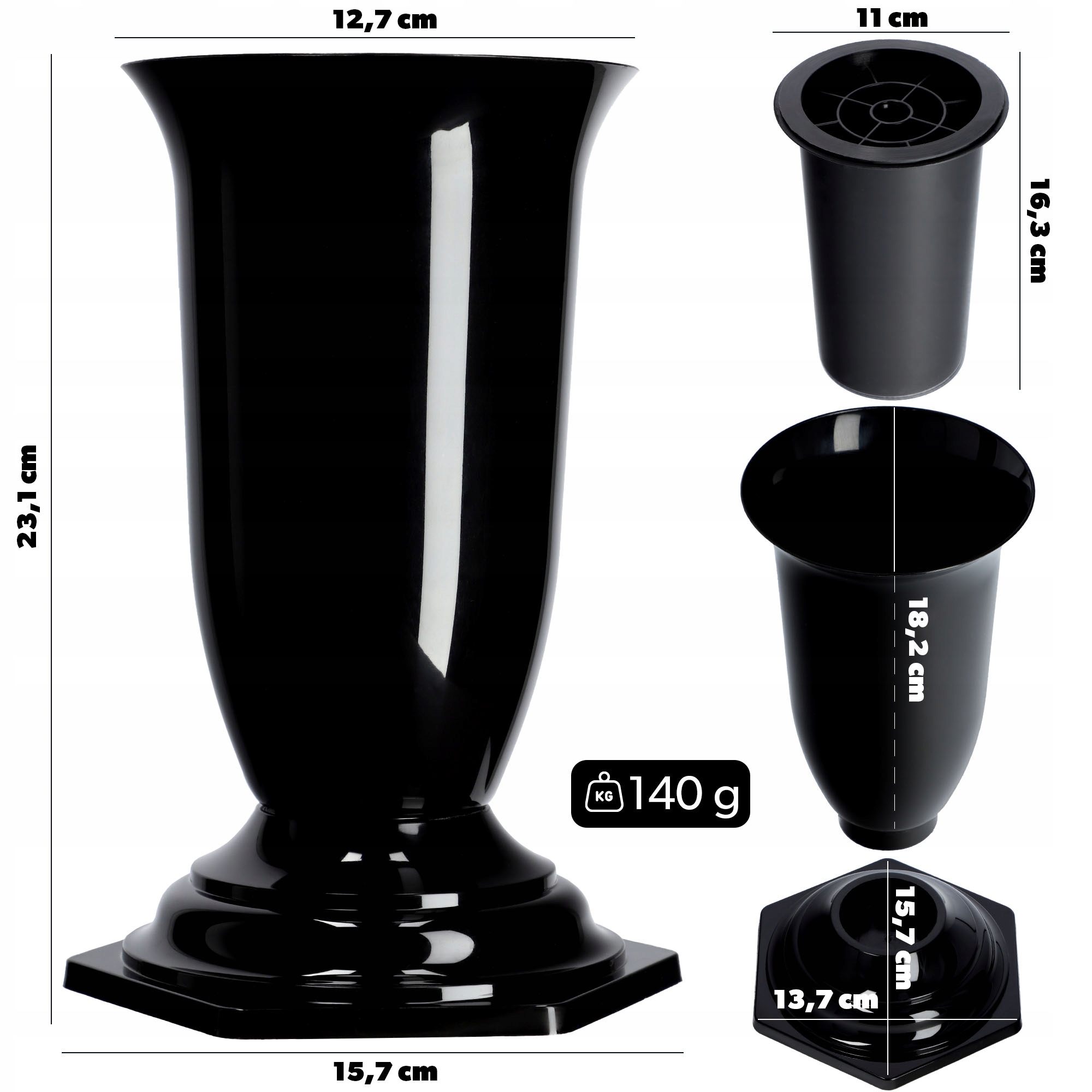 ВАЗА-КЛАПАН ДЛЯ КЛАДБИЩА, МОГИЛА, НАДМОБИЛЬНАЯ ПАМЯТЬ ЧЕРНАЯ 23см