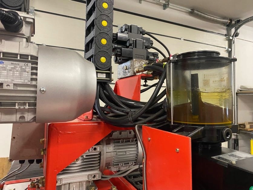 Машина оснащена охладителем гидравлического масла и автоматической централизованной смазкой, а также косозубые шестерни, благодаря которым машина работает намного тише и будет работать дольше. Максимальный диаметр пилы 650 мм. В циркулярном станке используются компоненты высочайшего качества от Siemens и Schneider. Управление машиной осуществляется посредством сенсорного экрана, джойстиков и кнопок на панели управления, а также посредством беспроводного пульта дистанционного управления. Главный двигатель имеет инвертор, позволяющий плавно регулировать скорость. Циркулярная пила имеет встроенный водяной шланг для промывки.