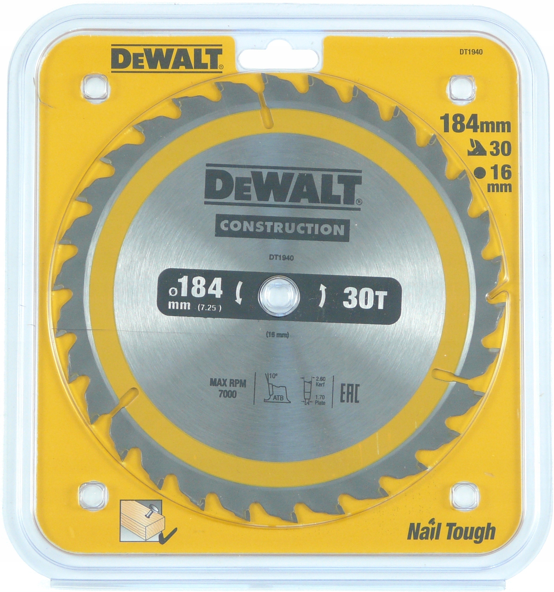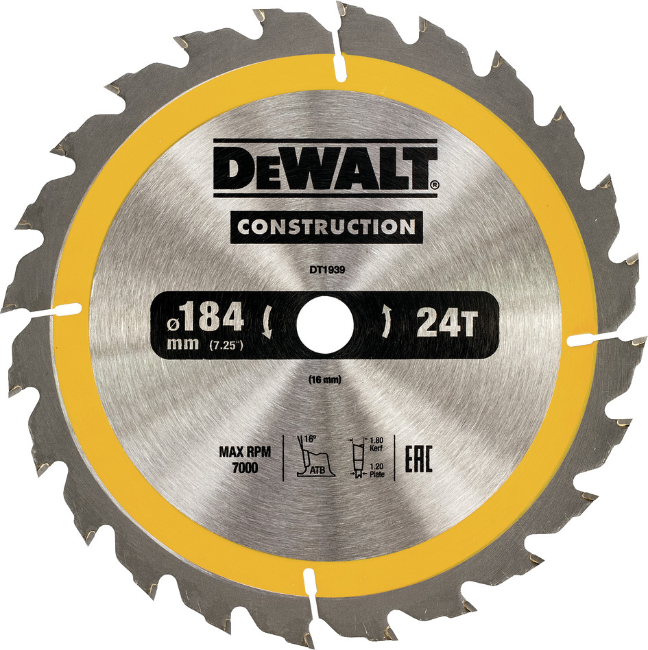 DEWALT DT1939 ПИЛЬНОЕ ПОЛОТНО ДЛЯ ДЕРЕВА 184x16мм 24 зубца
