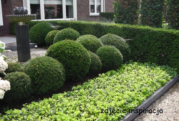 зеленый цизаский кустарник нарезан в шарики.