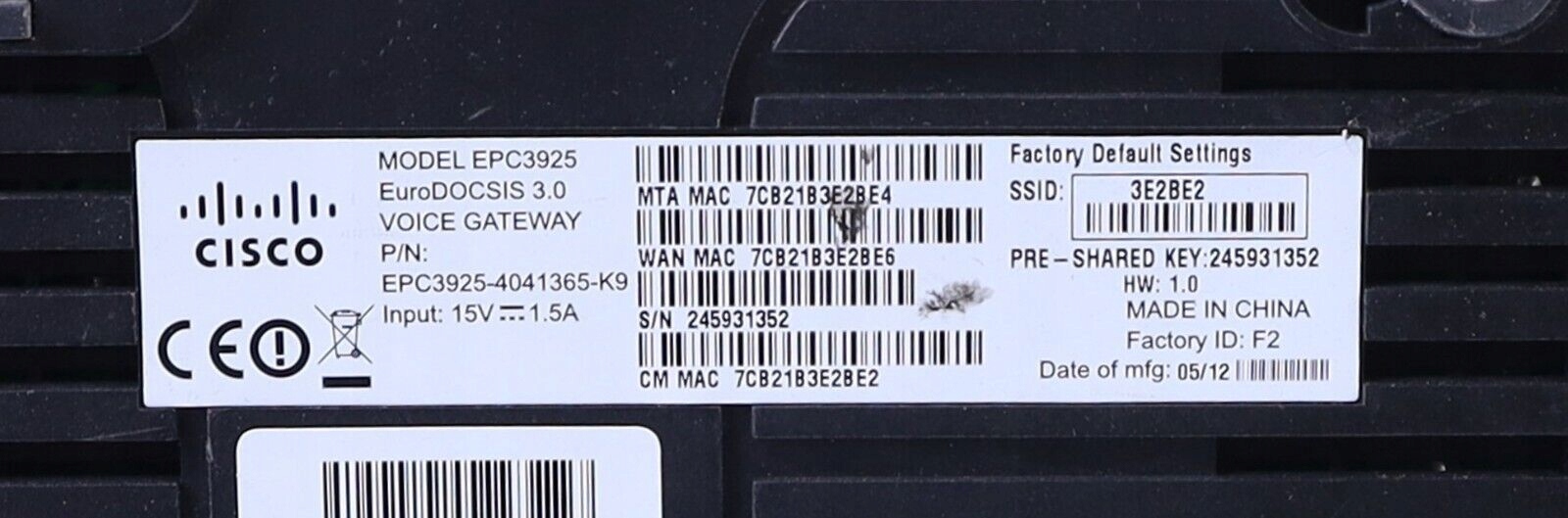 CISCO EPC3925 EuroDOCSIS 3.0 EPC3925-4041365-K9