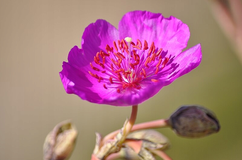 разнообразие яркости поступает из Чили, а также растет в Австралии. Это вечно зеленое, многолетнее многолетнее многолетнее многолетнее время, представленное в рок -кролике. Серебряный-зеленый, эллиптические, острые листья с широкими хвостами, тонкие стебли длиной 60-80 см. Цветы-кармина-розовые, широкие 5-8 см, собраны в верхней части разветвленных стеблей. Это расцветает с середины -и лета. Цветы порталаки открываются только в солнечные дни, цветочные побеги растут примерно до 30 см в высоту. Растение идеально подходит для посадки в контейнерах и для скидков в скале.