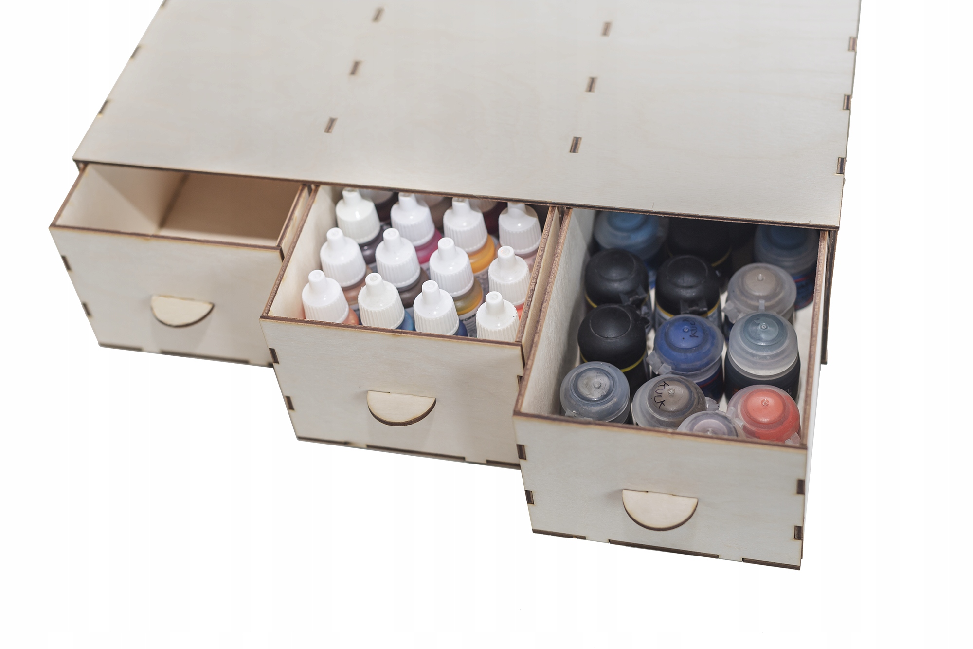 Ящики для краски предназначены для защиты красок от пыли — мы свели зазоры между ящиками и основанием до абсолютного минимума. Рекомендуем ящики для расширения модульной малярной мастерской. Он идеально сочетается с нашей классической подставкой с выдвижными ящиками, которую можно найти в нашем магазине.