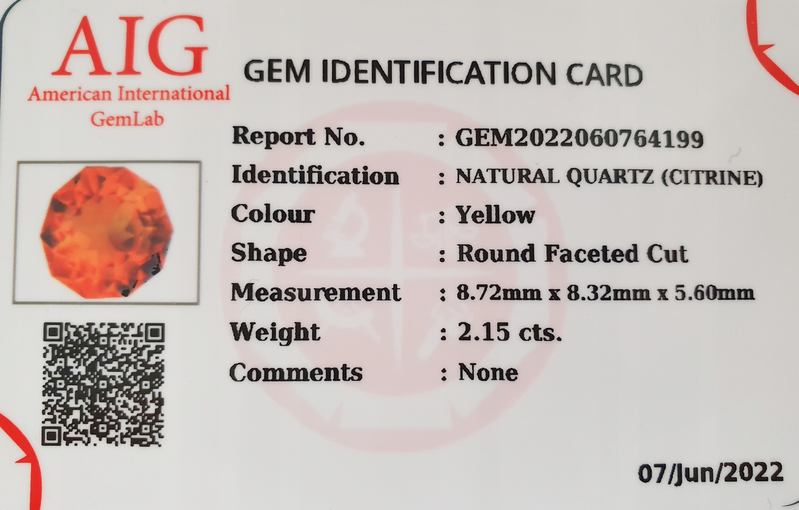 Натуральный цитрин 2,15 карата + сертификат
