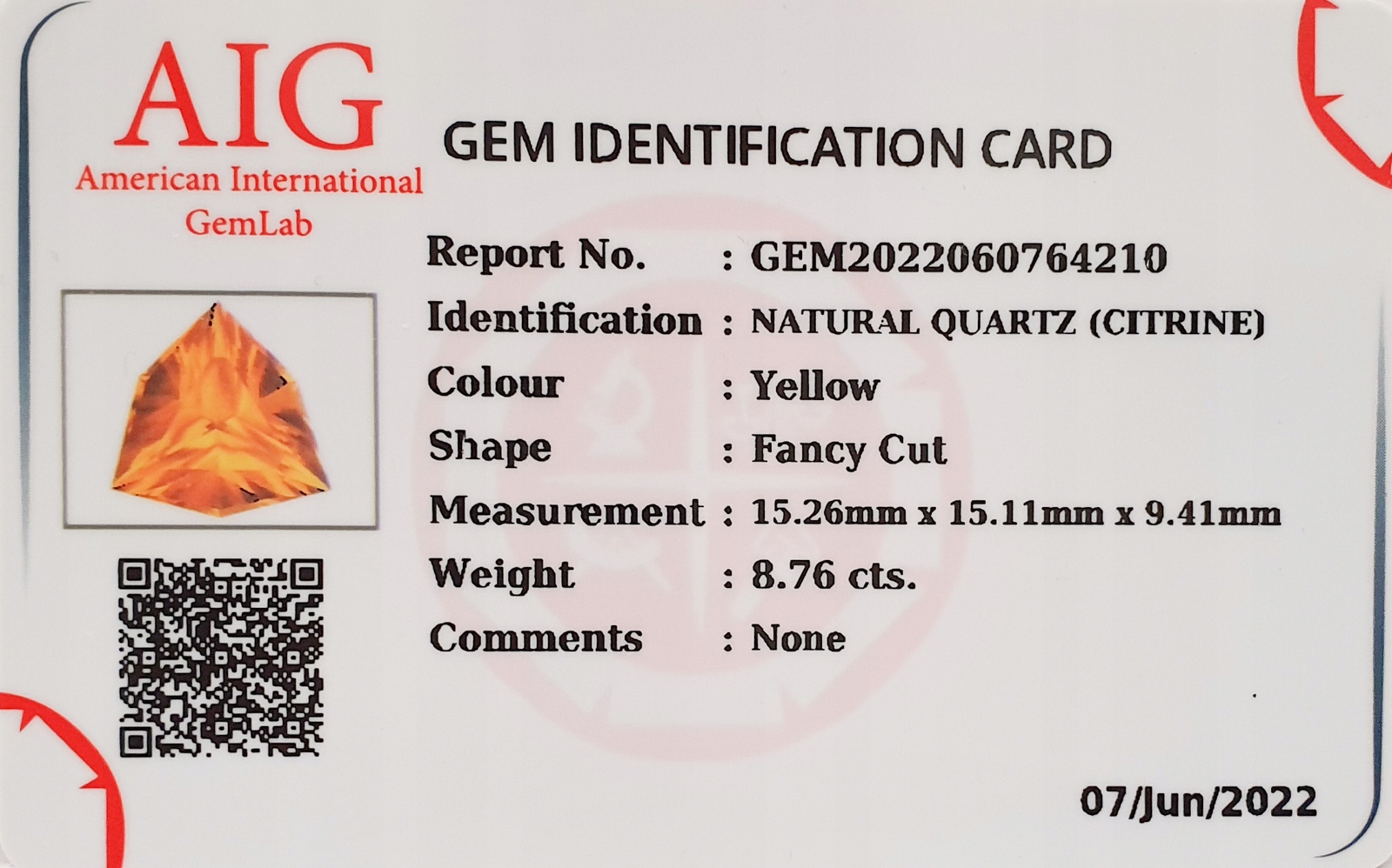 Просматривая «Цитрин натуральний 8,76 карат + Сертифікат», вы можете быть уверены, что данный товар из каталога «Лимон» будет доставлен из Польши и проверен на целостность. В цене товара, указанной на сайте, учтена доставка из Польши. Внимание!!! Товары для Евросоюза, согласно законодательству стран Евросоюза, могут отличаться упаковкой или наполнением.