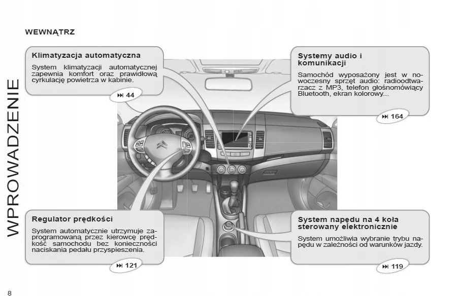 Руководство по эксплуатации Citroen содержит все версии оборудования и полезную информацию о том, как эффективно и безопасно использовать автомобиль, например: - индикаторы, контрольные лампы, открывание и закрывание - освещение и обзорность, сиденья, вещевые отсеки, отопление, вентиляция, кондиционирование воздуха - вождение, советы по эксплуатации, обслуживание автомобиля - уровни жидкостей, проверка и доливка, аварийные операции, замена колес, предохранителей, замена лампочек - технические данные... и многое другое, дающее путешественникам ощущение безопасности и комфорта. Польское законодательство обязывает продавца приложить к автомобилю руководство по эксплуатации на польском языке. Руководство пользователя автомобиля новое, на польском языке.