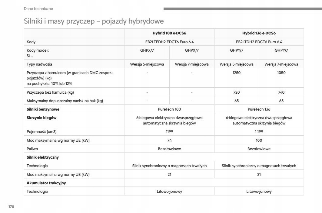 Гибридные автомобили: Hybrid 100 e-DCS6, Hybrid 136 e-DCS6, Hybrid 100 e-DCS6, Hybrid 136 e-DCS6, PureTech 100, PureTech 136