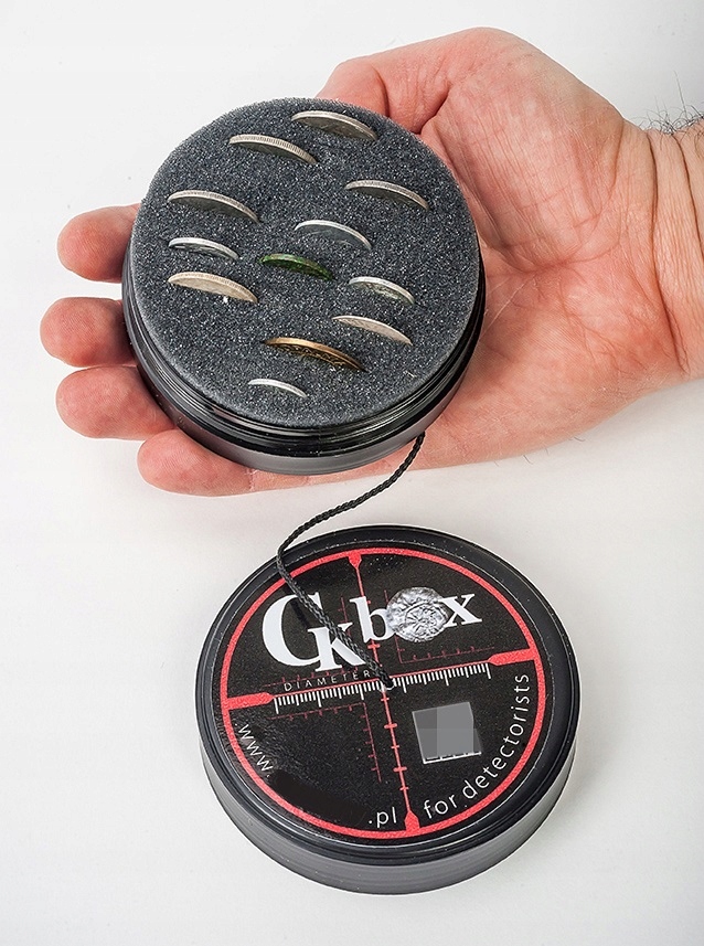 На крышке имеется наклейка со шкалой 50 мм, которая поможет вам определить размеры находок.