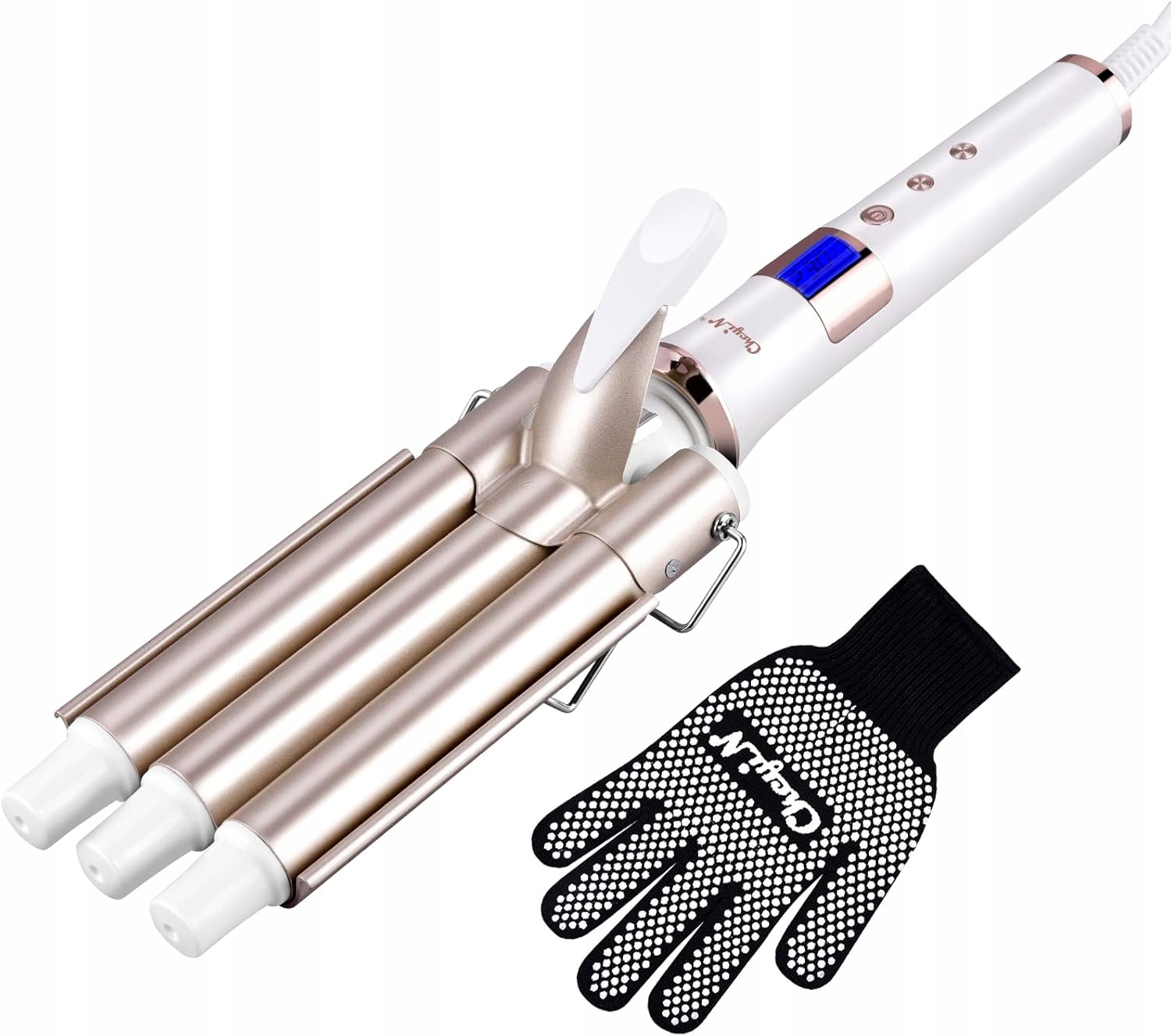 Выпрямитель для волос CkeyiN Wave 22 мм, 3 трубки с регулируемой температурой 80-230℃, щипцы для завивки с ЖК-дисплеем.