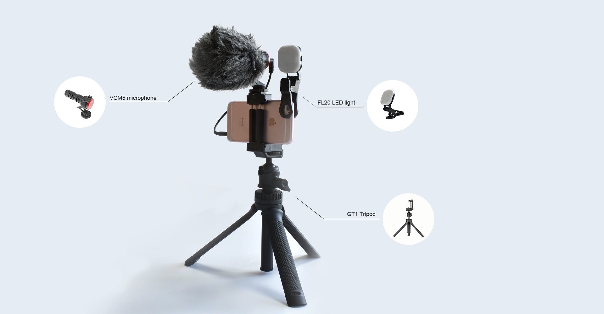 vcm5 - это микрофон с суперкардоидными характеристиками, который должен обеспечить его направленностью, подходящей для голосовых записей. Полоса переноса микрофона находится в диапазоне от 50 Гц до 20 кГц, что обеспечивает отношение шума до 72DB SPL. Максимальный уровень давления SPL составляет 130 дБ. Для зарядки встроенной батареи, которая питает лампу, он получает USB -кабель. Общий вес набора составляет 280 г, максимальная высота штатива составляет 25 см, и если мы хотим использовать его в качестве селфи, даже 90 см. Штатив изготовлен из ABS.