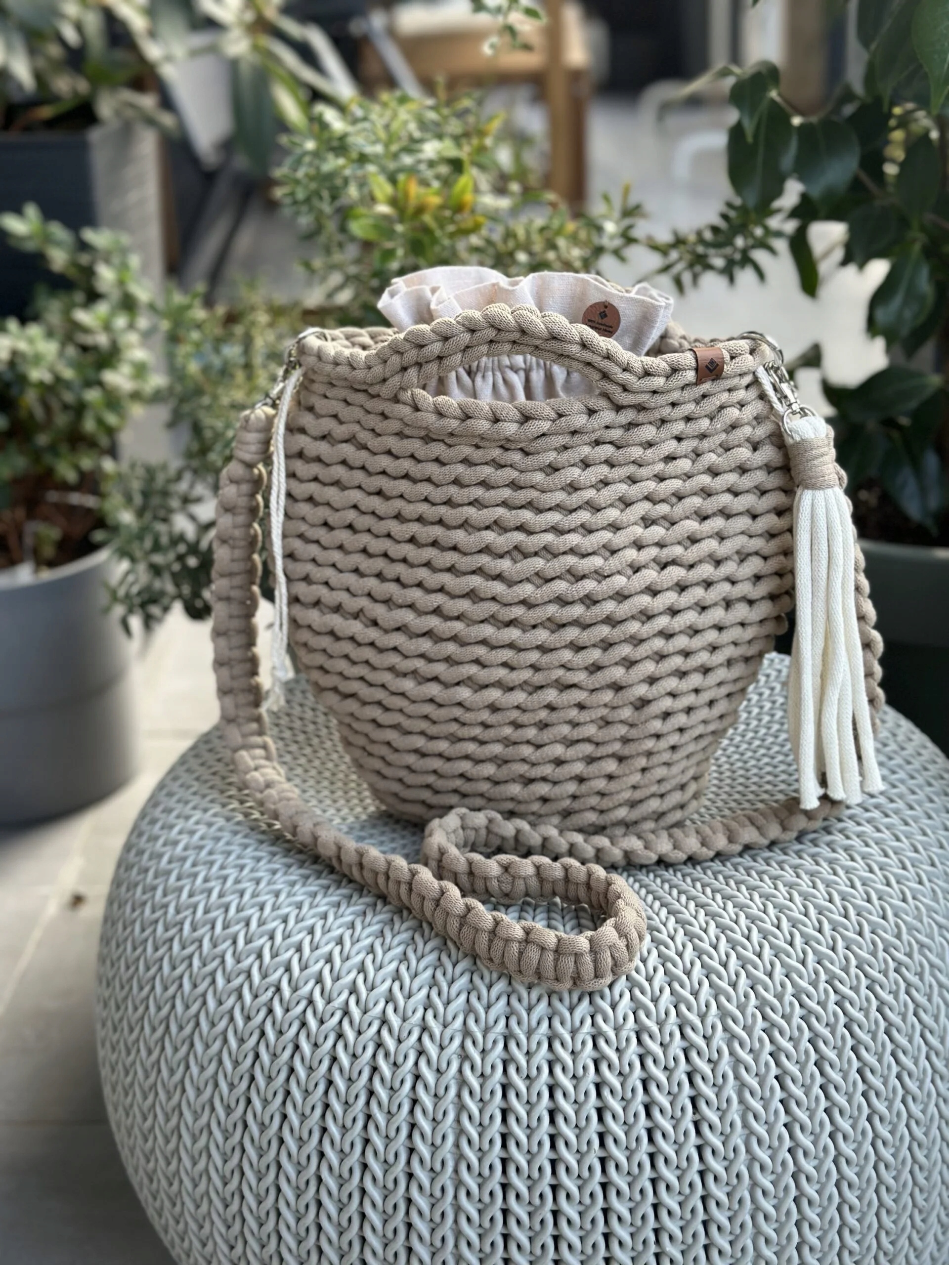 Сумочка, сделанная вручную вязаным вязанием с наибольшей заботой для деталей.
