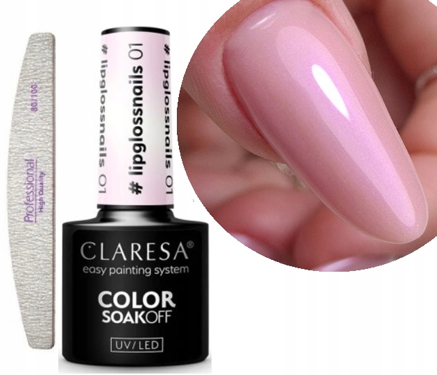CLARESA LIPGLOSSNAILS 01 LAKIER HYBRYDOWY z efektem błyszczyka + PILNIK